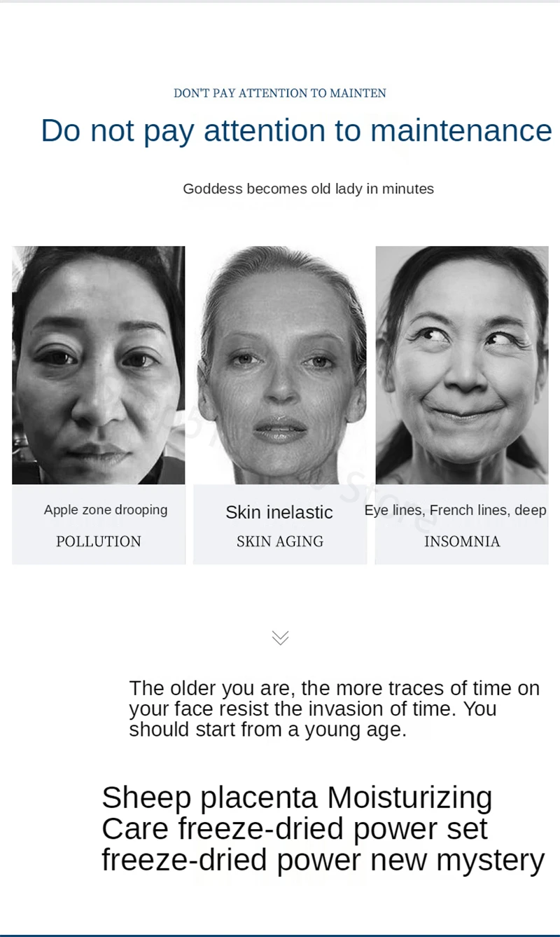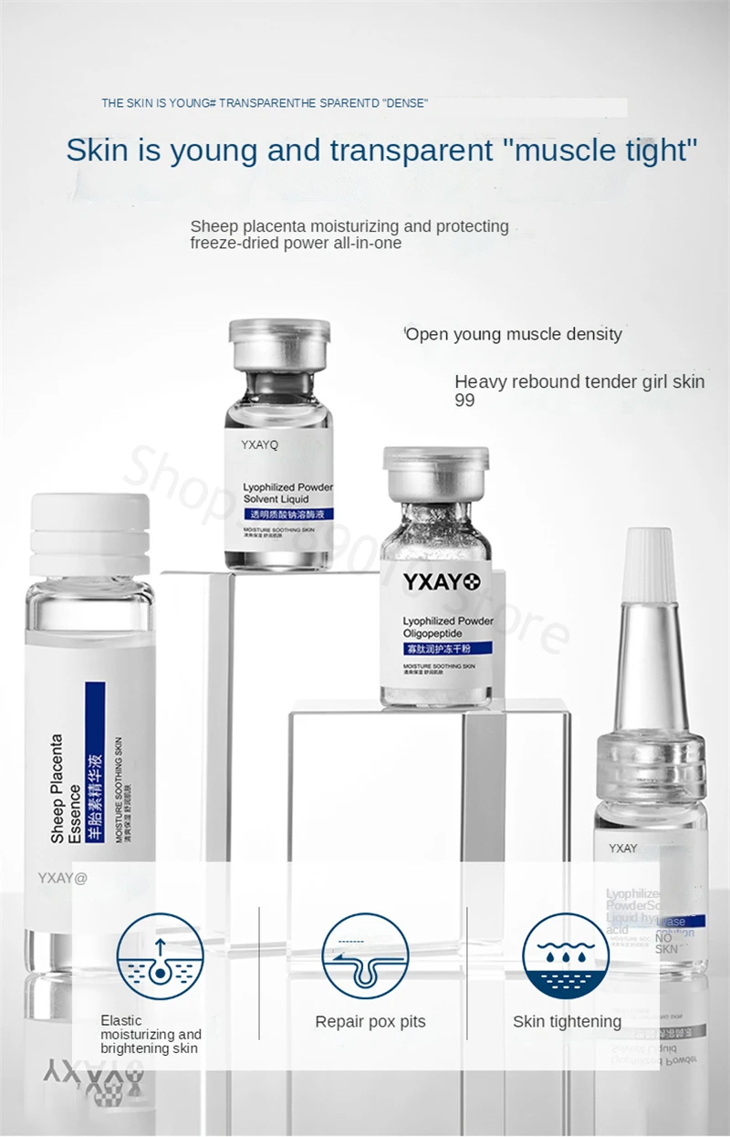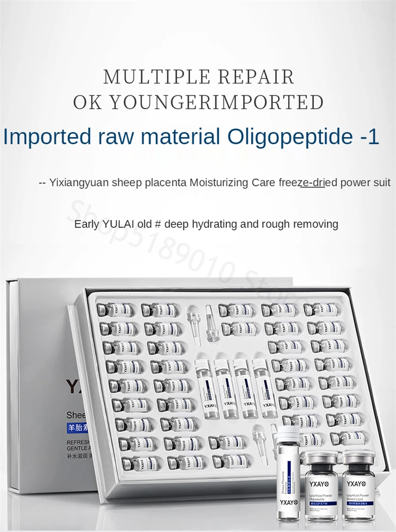44PCS Sheep Placenta Oligopeptide Freeze-Dried Powder Kit Facial Repair Anti Aging Essence Acne Treatment Skin Care Face Serum