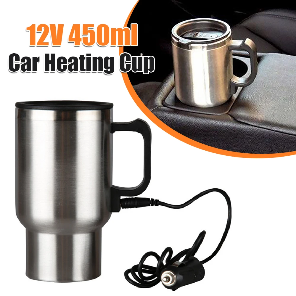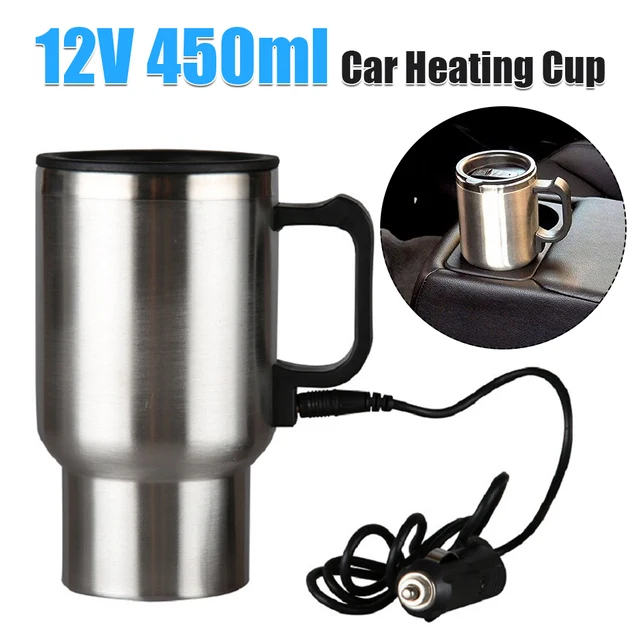 450ml Car Heating Cup Stainless Steel Electric In-car Travel Heating Cup 12V Heated Mug for Heating Water Coffee and Tea Feature: