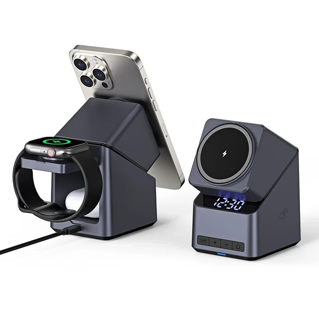 -53%4in1 Electric Rotating Magnetic 15W Wireless Charger Time Display Touch Rotation for iPhone Watch AirPods Ideal Charging Stand