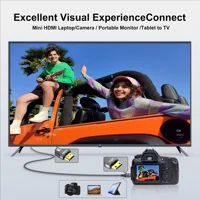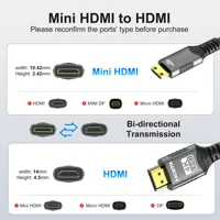 3.Dual-Direction Mini HDMI Transmission: Before use, ensure your device is equipped with a mini HDMI port (not micro HDMI or micro USB). This cable supports both mini HDMI to HDMI and HDMI to mini HDMI connections, facilitating audio and video transfer between cameras, camcorders, tablets, graphics cards, laptops, and HDTVs or projectors with HDMI ports via the mini HDMI port.