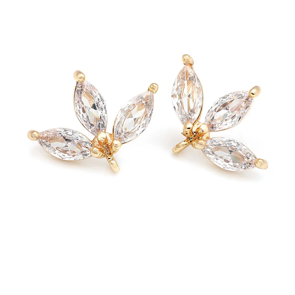 4PCS 18K Gold Color Brass with Zircon Tree Leaf Leaves Stud Earrings Pins High Quality Diy Jewelry Making Supplies for Women