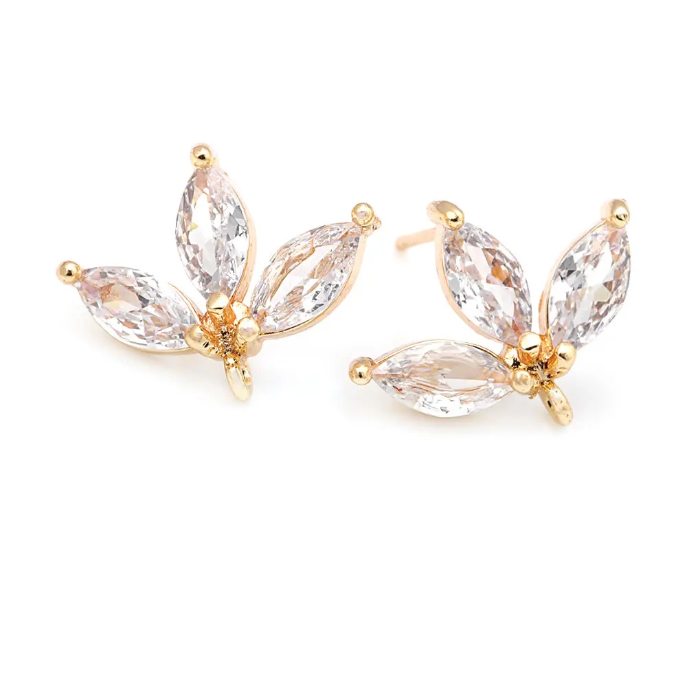 4PCS 18K Gold Color Brass with Zircon Tree Leaf Leaves Stud Earrings Pins High Quality Diy Jewelry Making