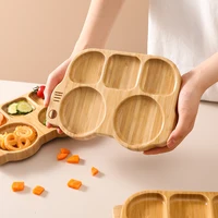 4pcs Bamboo Plate Sets Customized Baby Feeding Bowl Car Cloud Shaped Plate Spoon Fork Tableware Suction Plate Bowl Feeding Set