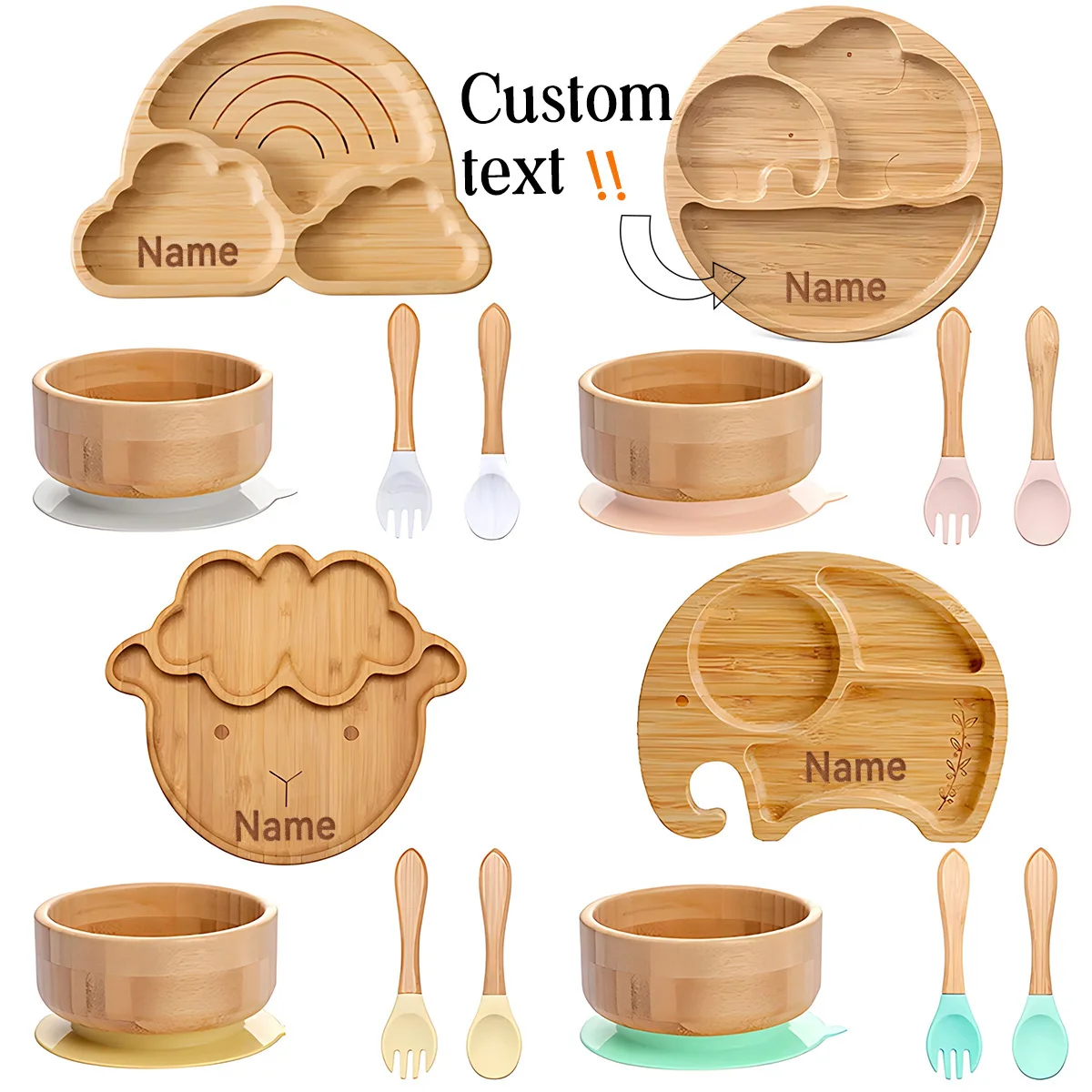 Be the first to review “4pcs Bamboo Plate Sets Customized Baby Feeding Bowl Car Cloud Shaped Plate Spoon Fork Tableware Suction”