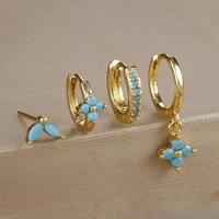 3PCS Stainless Steel Gold Color Crown Stud Earring Set For Women 14K Gold Plated Crystal Zircon Unique Horse Eye Earring Jewelry