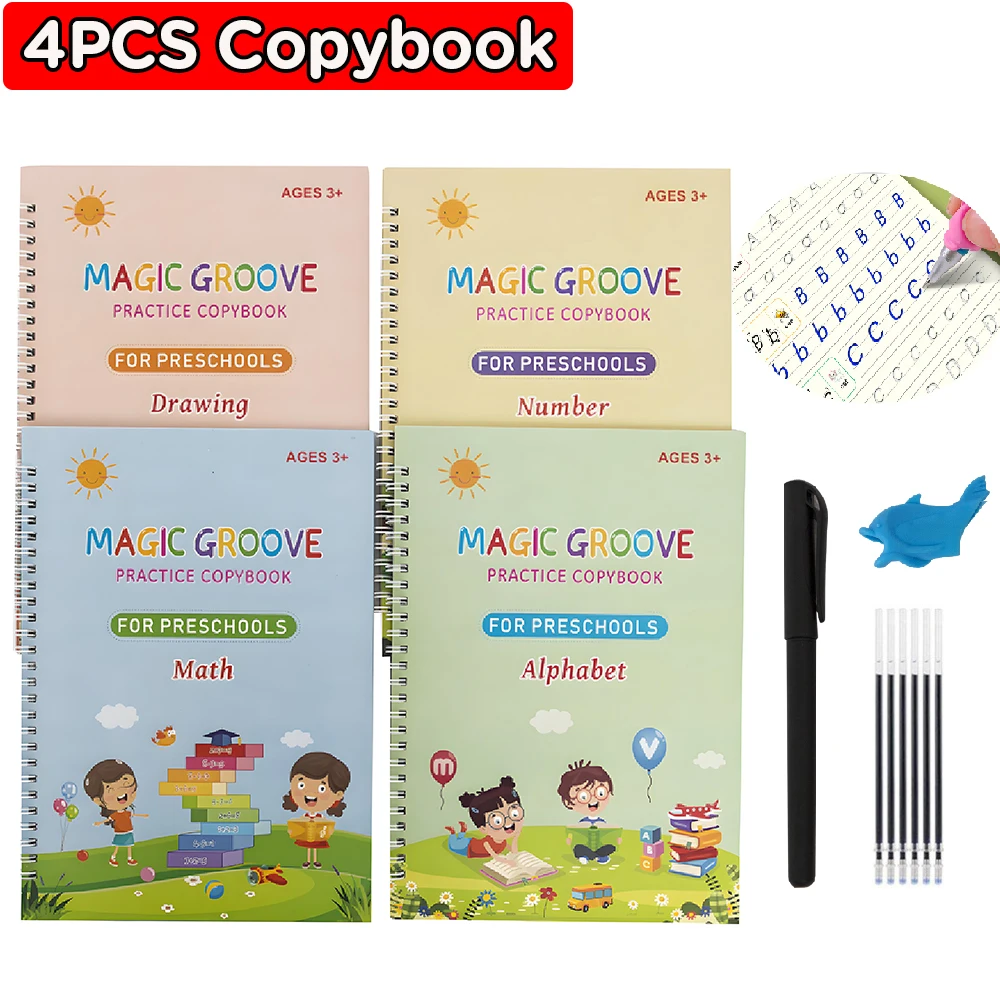 4 PCS Magic Copybook Drawing Toys for Kids Montessori Reusable Pen Control Training Writing Sticker Learning Educational Toy ChildrenÂ