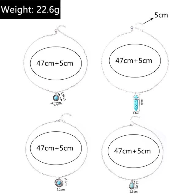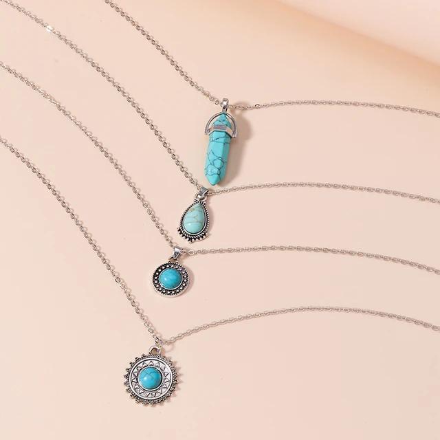 4Pcs/Set Bohemia Turquoise Stone Sun Pendant Necklace for Women Girls Party Festival Jewelry Gifts