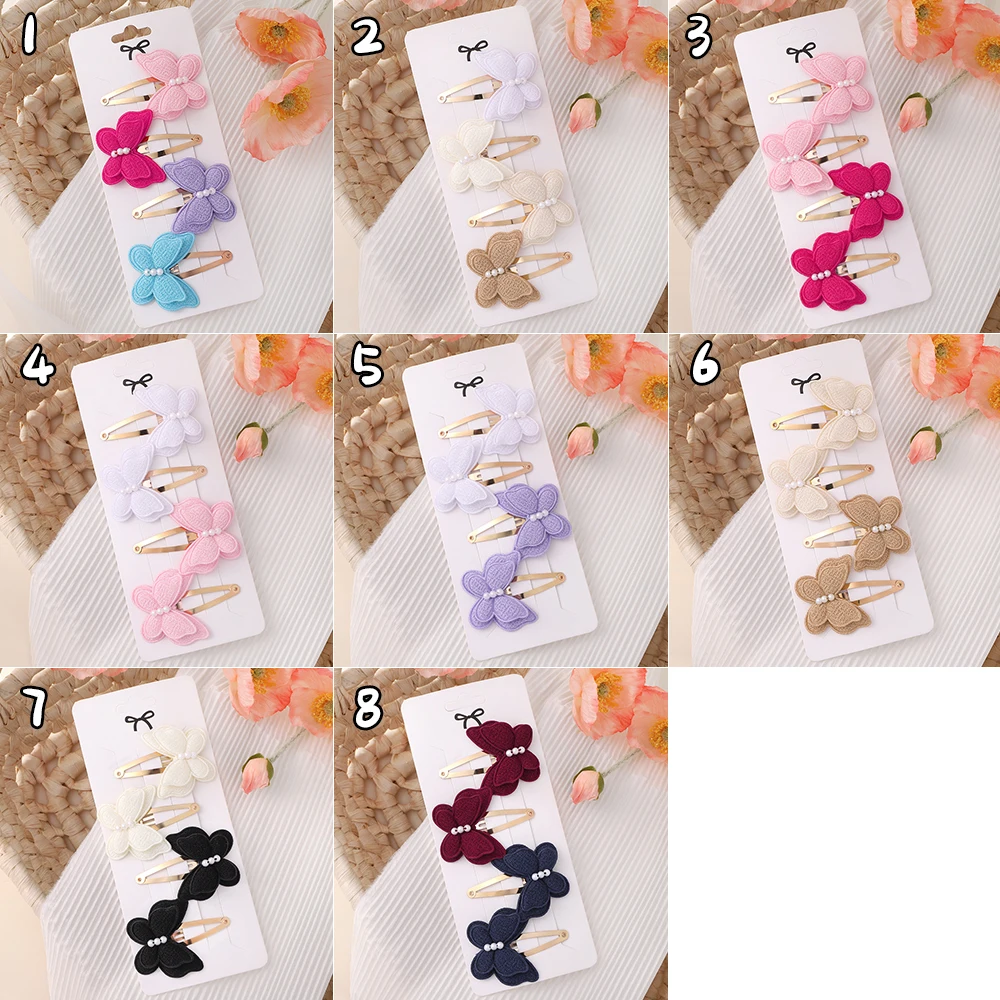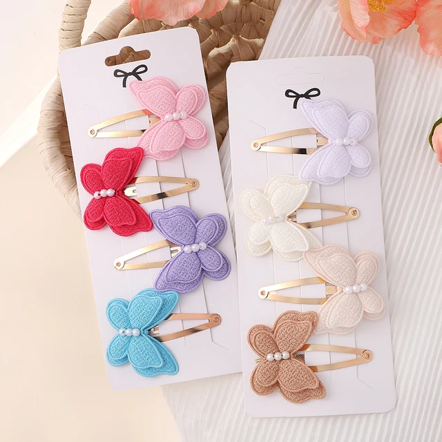 4Pcs/set Butterfly Hair Clip Set for Girls Double Layered Bow Cute Bangs Hair Pin Cotton Safe Kids Baby