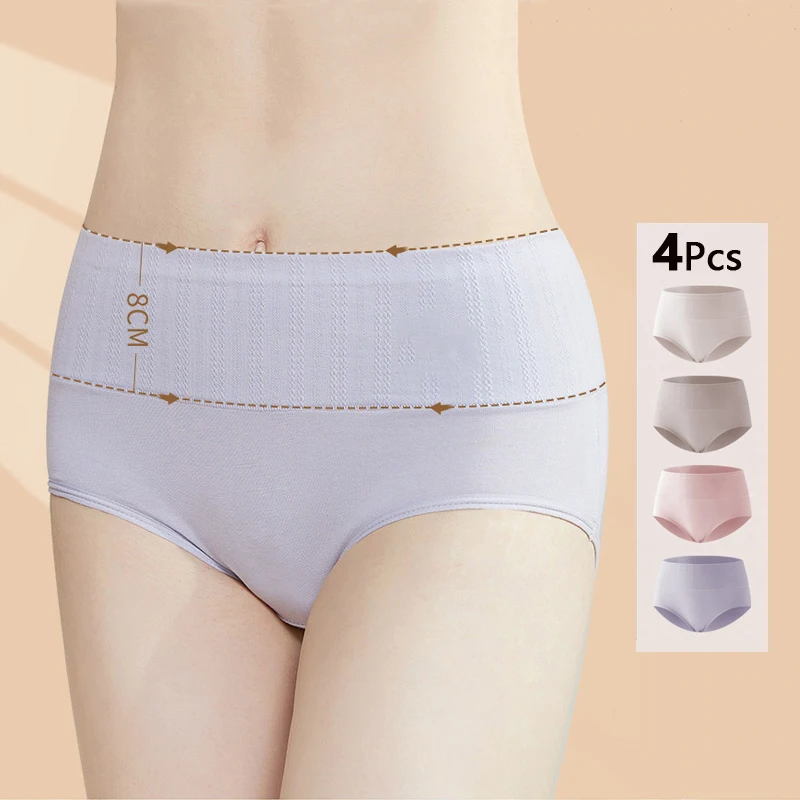 4Pcs/Set High Waist Cotton Panties Women Body Shaper Underwear Girls Briefs Breathable Plus Size Underpants