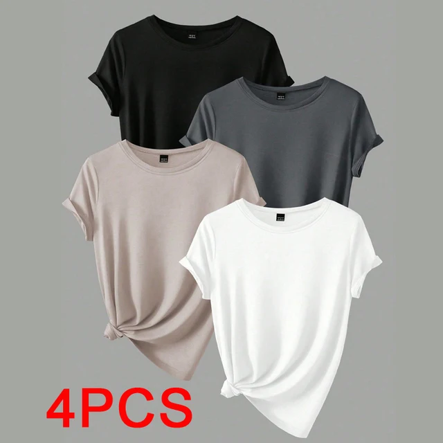 4PCS Women’s Trend T-shirts Leisure Summer Tops Woman Clothing Plus Size Short Sleeve T Shirt Clothes