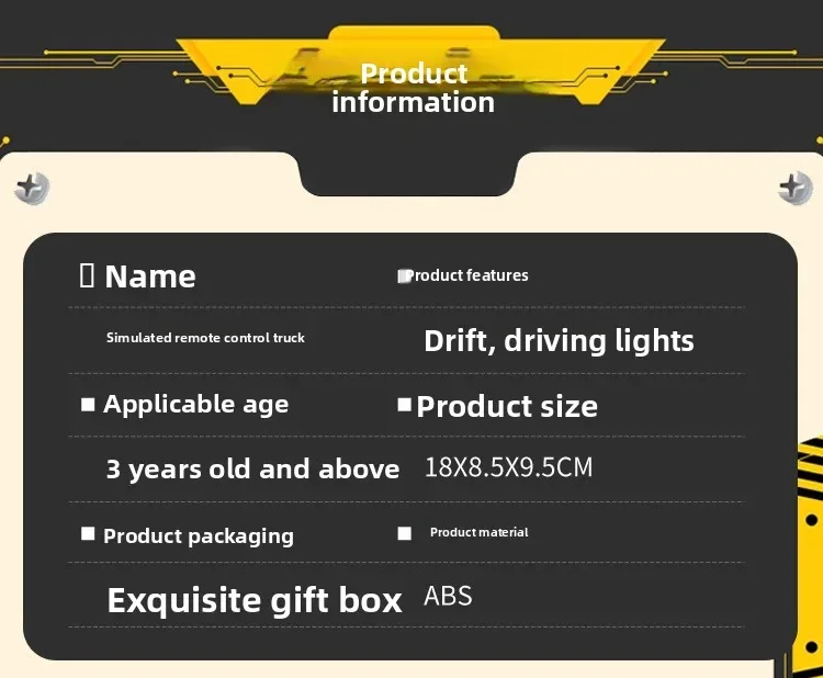 | Featured features | Remote control front and rear, left and right, drift |