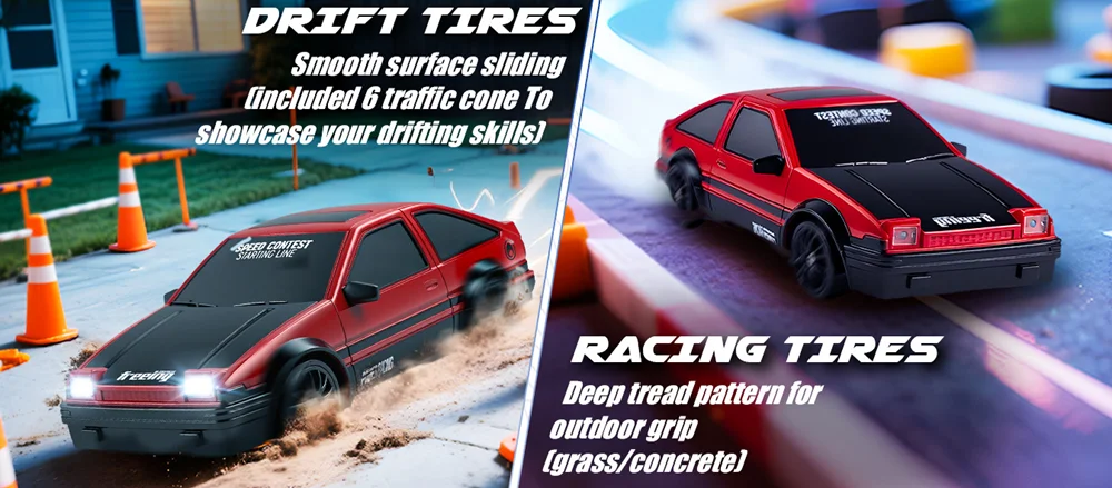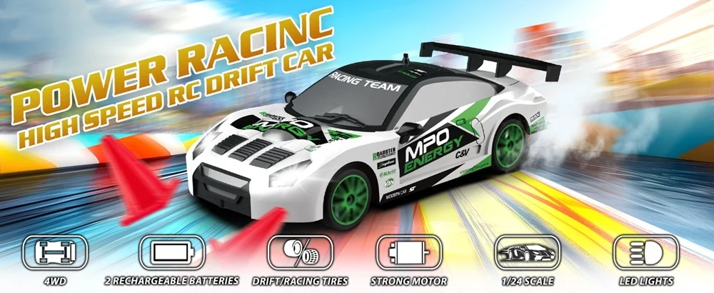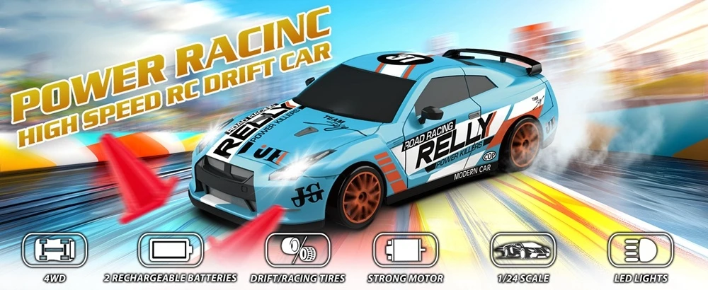 • High Speed RC Drift CarThis RC car can reach high speeds, making it perfect for drifting and racing.
