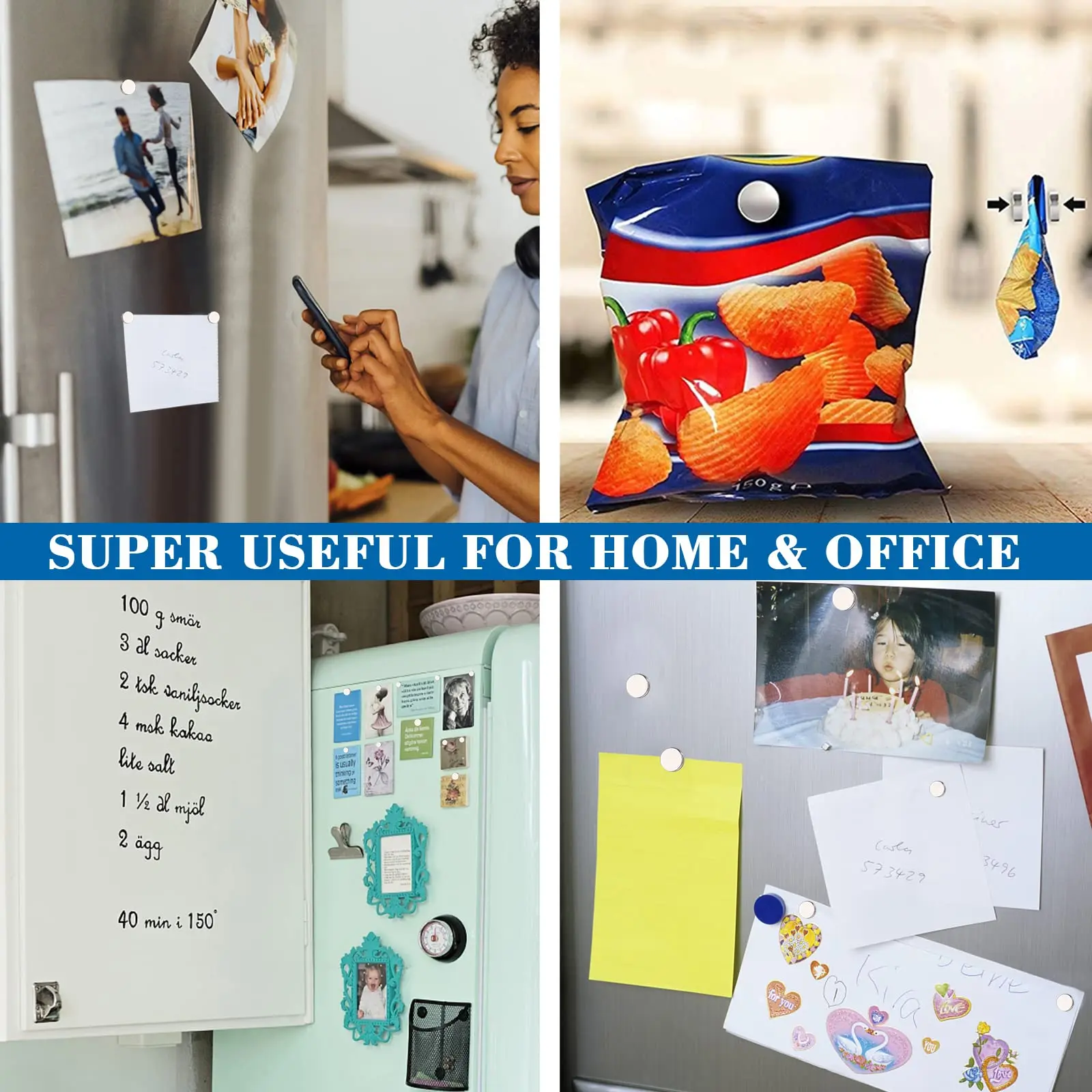【UNLIMITED USES】These neodymium disc magnets work great as strong refrigerator magnets, for arts and crafts, DIY projects, hanging spice jars, pictures, whiteboards, tools in the garage, or science classroom at school, etc.