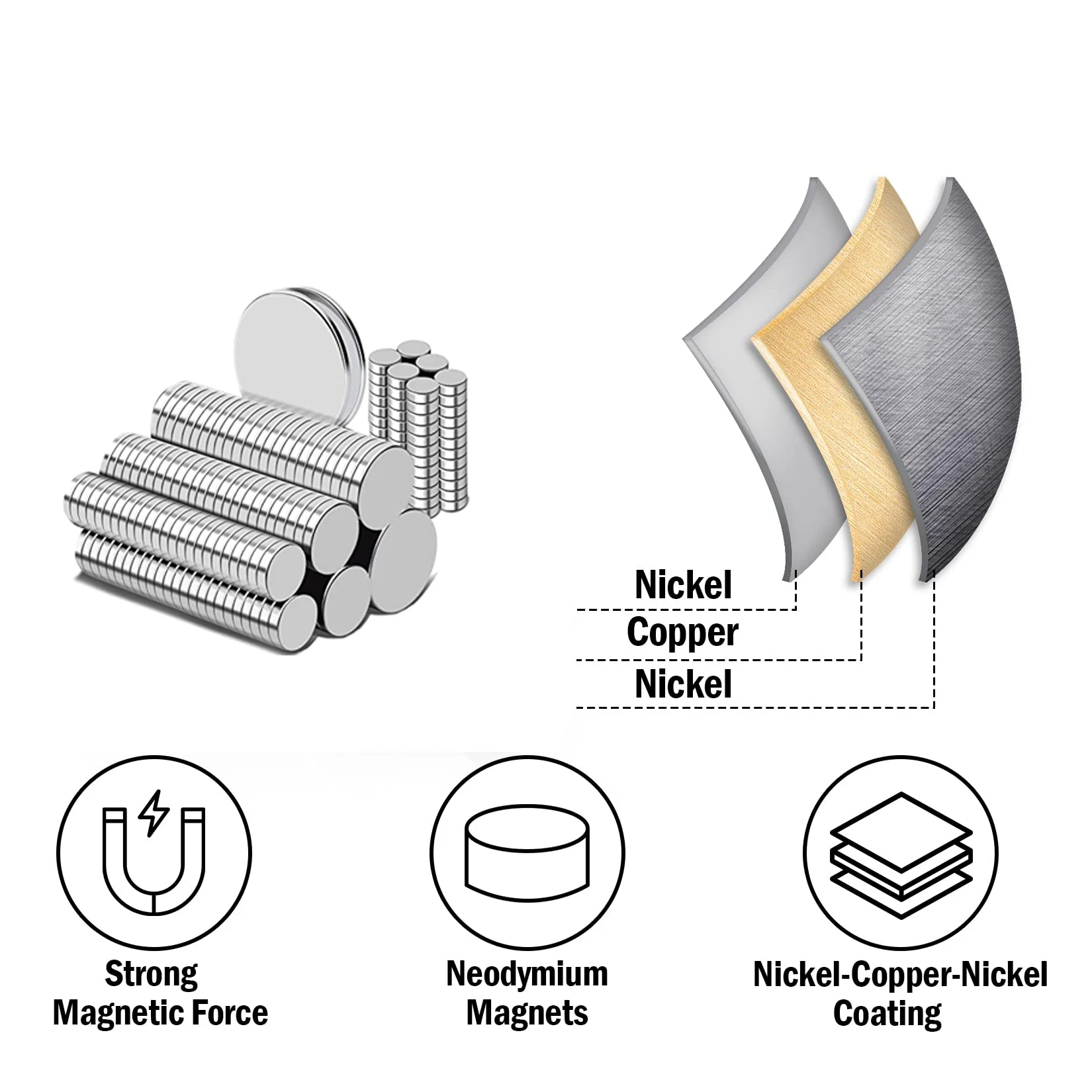 【MAGNETS COATED】You will love the smooth and shiny finish. Our magnets are protected with a corrosion-resistant Ni-Cu-Ni (Nickel-Copper-Nickel) coating to create a high-quality silver look that doesn’t rust or scratch.
