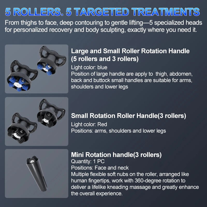Flexible soft nubs (mimic human fingertips) deliver deep kneading massage, breaking down fat deposits, reducing cellulite, and shaping body contours — 30 mins = 3.5 hours of manual massage!