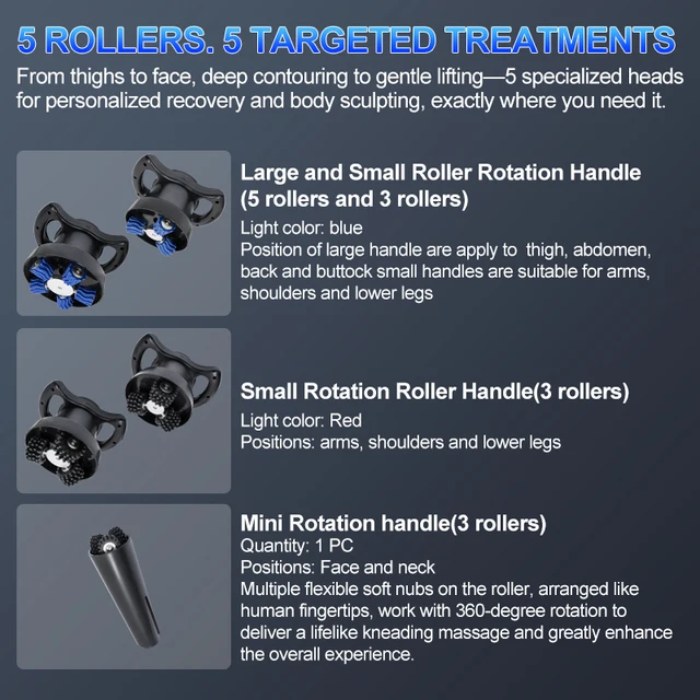 Large 5-roller handles (for thighs, abdomen, back, buttocks)