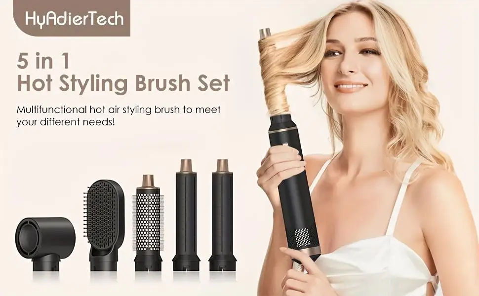 5 in 1 Blow Dryer Brush, Upgrade Hair Dryer Brush Air Curler Air Curling Wrap Styler, Detachable Hot