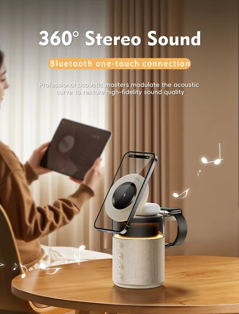 5-in-1 Magnetic Wireless Charging Station with Wireless Speaker Night Light Fast Charger for iPhone iWatch