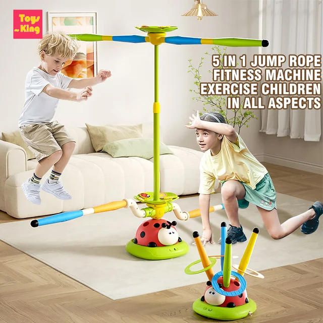 5 In1 Kids Ladybug Toy Air Launcher Ferrule Jump Game Adjustable Skipping Rope Sport Indoor Outdoor Educational Toys Boy Gifts