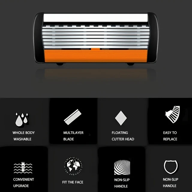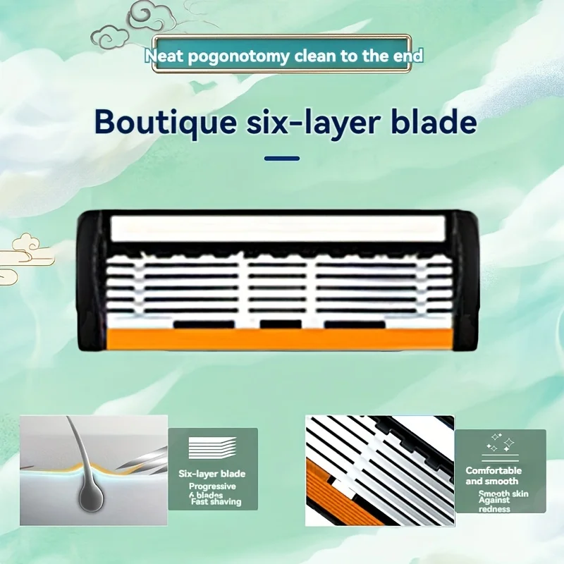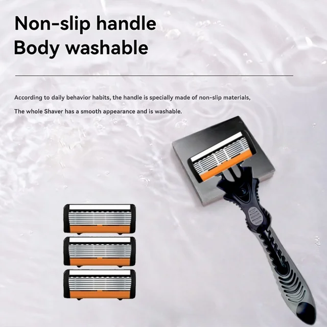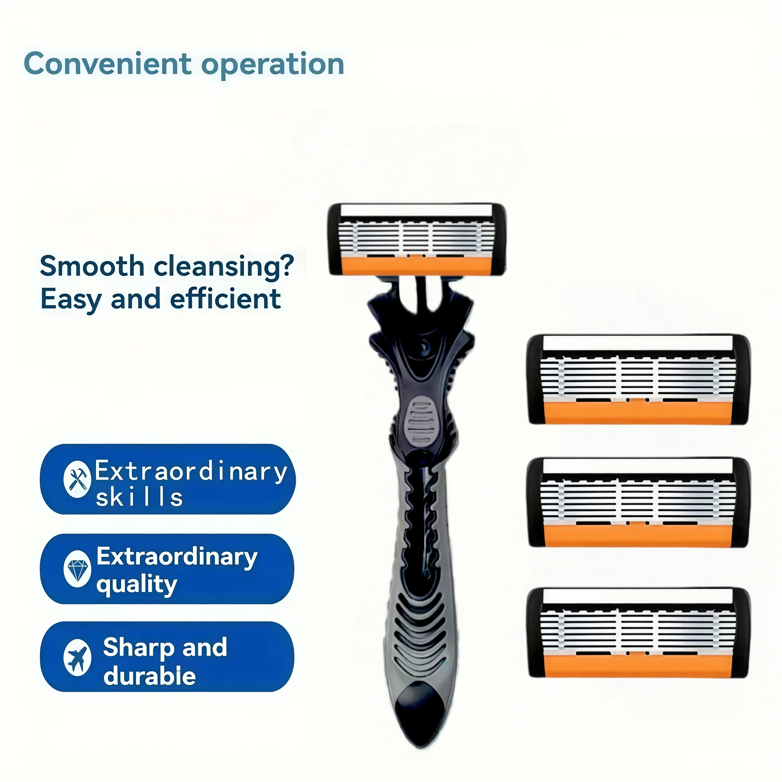5-layer stainless steel manual shaver blade, men’s classic shaver safe cleaning and care tool,