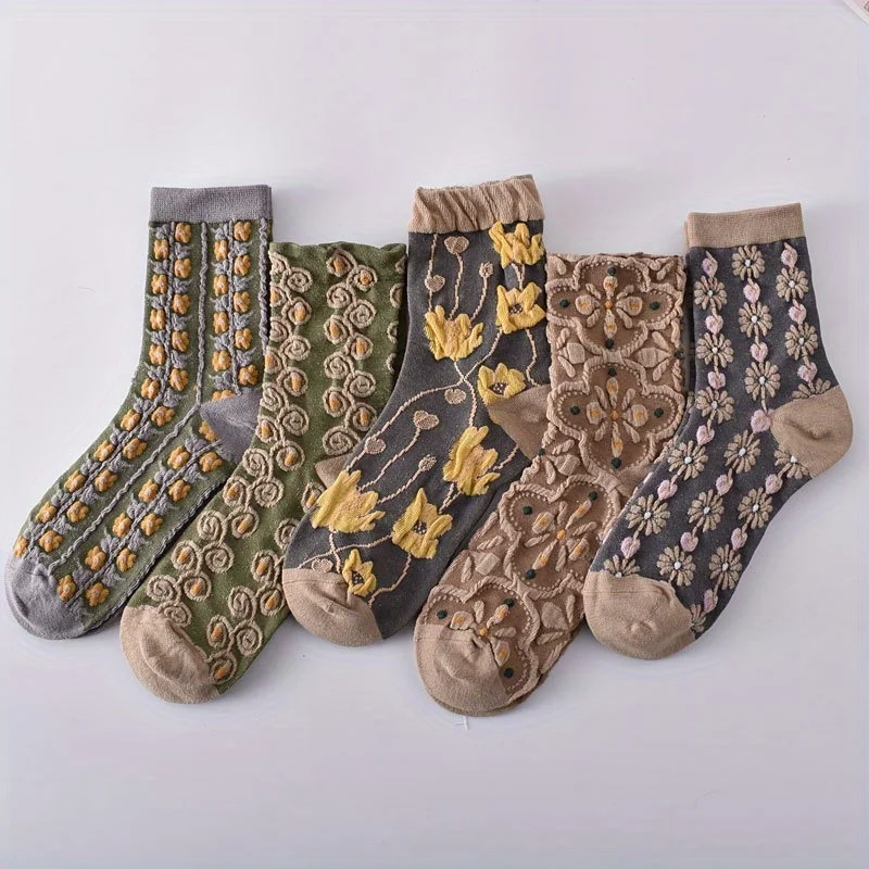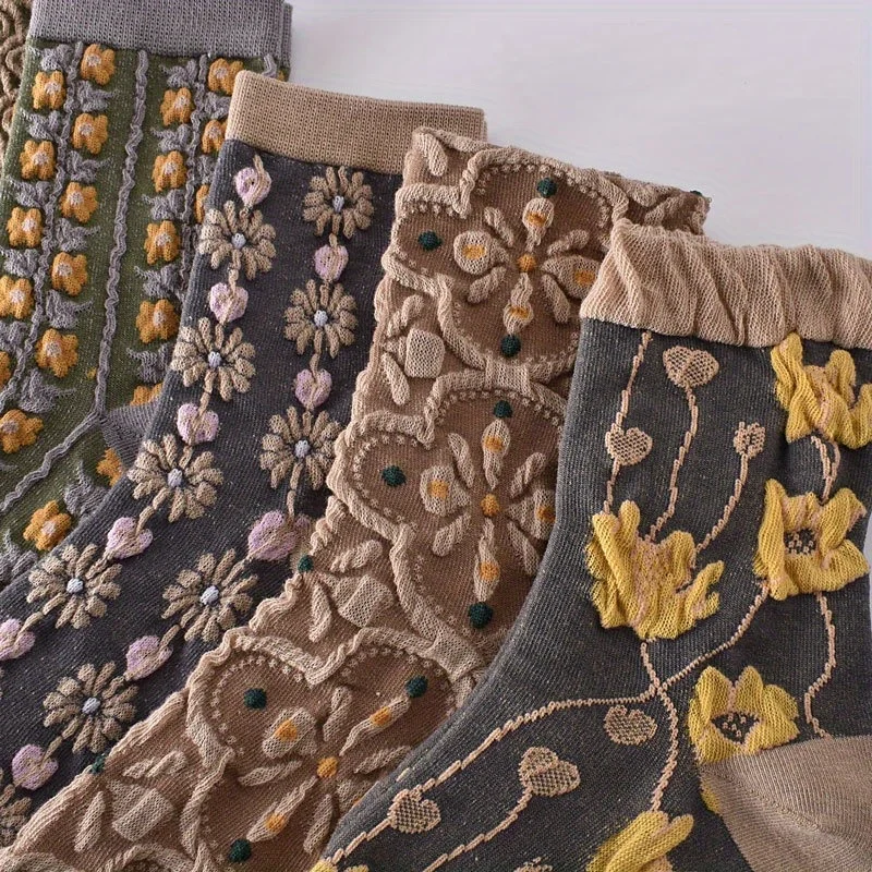 Unique Design: 3D floral textured socks with retro court style, adding a touch of elegance to your outfit.