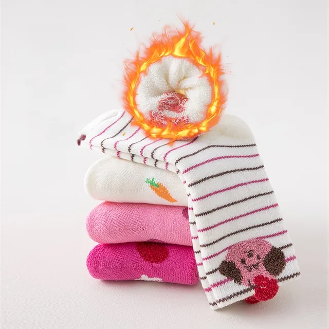 5 pairs of cute children’s warm socks with thick lamb fleece lining for autumn and winter, featuring