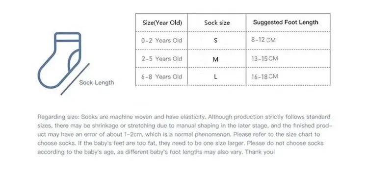 Socks also have excellent anti-wrinkle properties, can maintain their original shape and texture for a long time, have good elasticity, and can better adapt to different children’s foot shapes and sizes.