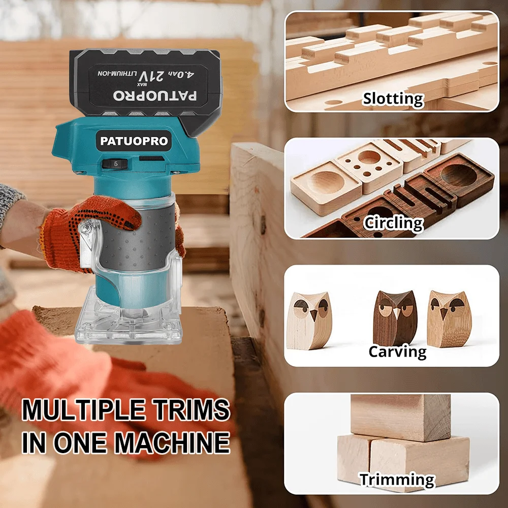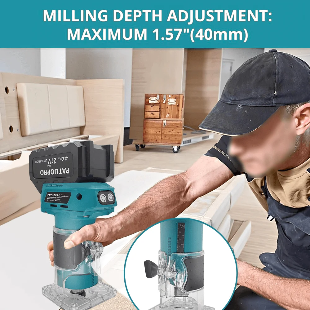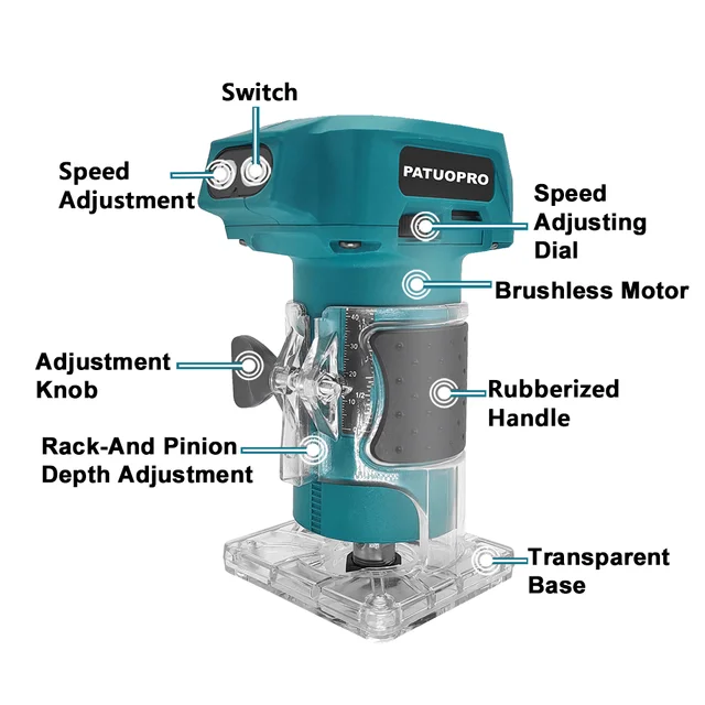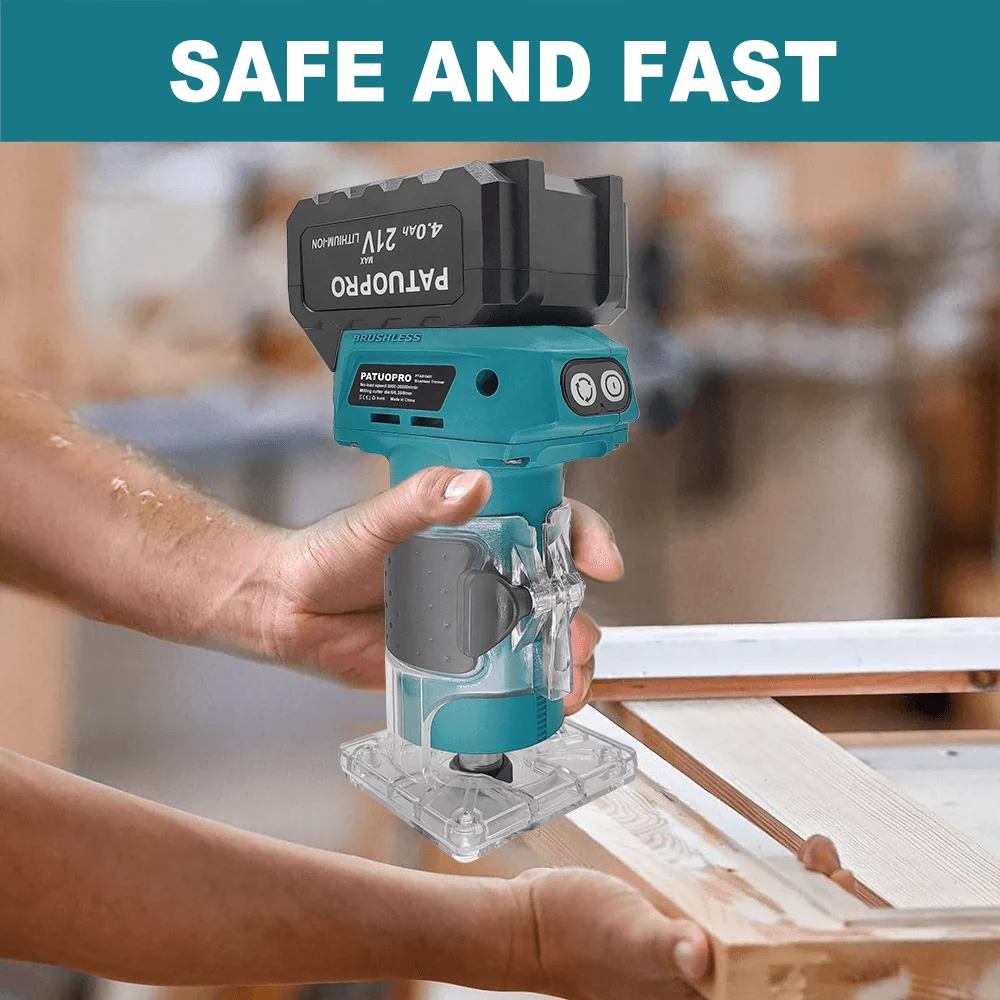 【POWERFUL ROUTER PERFORMANCE】Equipped with a brushless motor, this wood router delivers strong power for efficient operation. With a fastest speed of 30000 r/min, this Electric Wood Hand Trimmer is capable of handling hard wood and various woodworking tasks with ease.