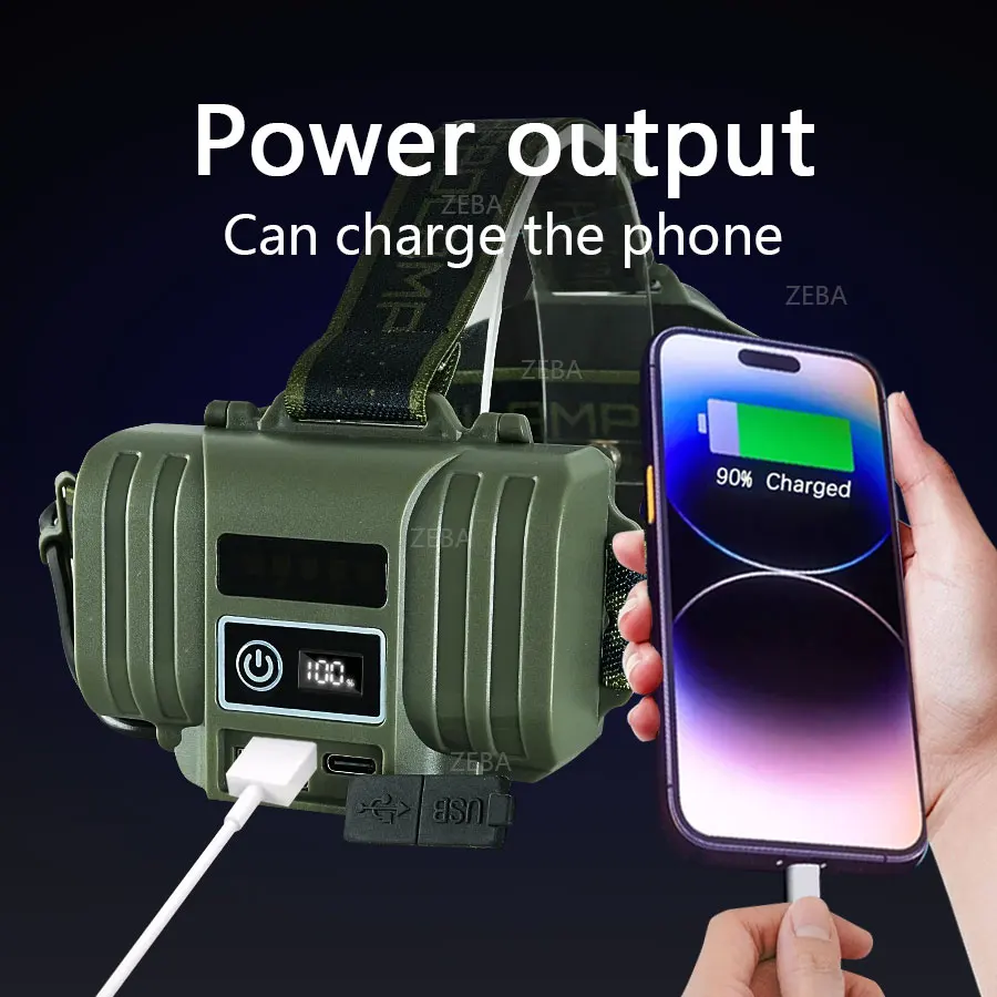 Extra-high power strong bald head light! Retractable zoom, adjust angle, battery output, multi-functional and lightweight headlight!