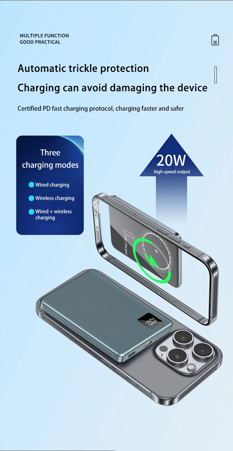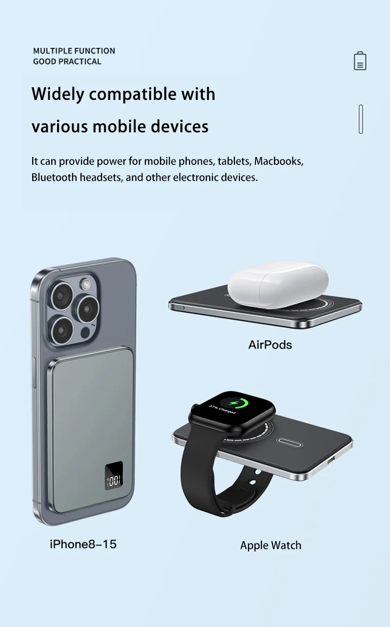 VIVO 50000mAh Magnetic Power Bank Wireless Super Fast Charging Portable External Battery Charger For iPhone Huawei Samsung