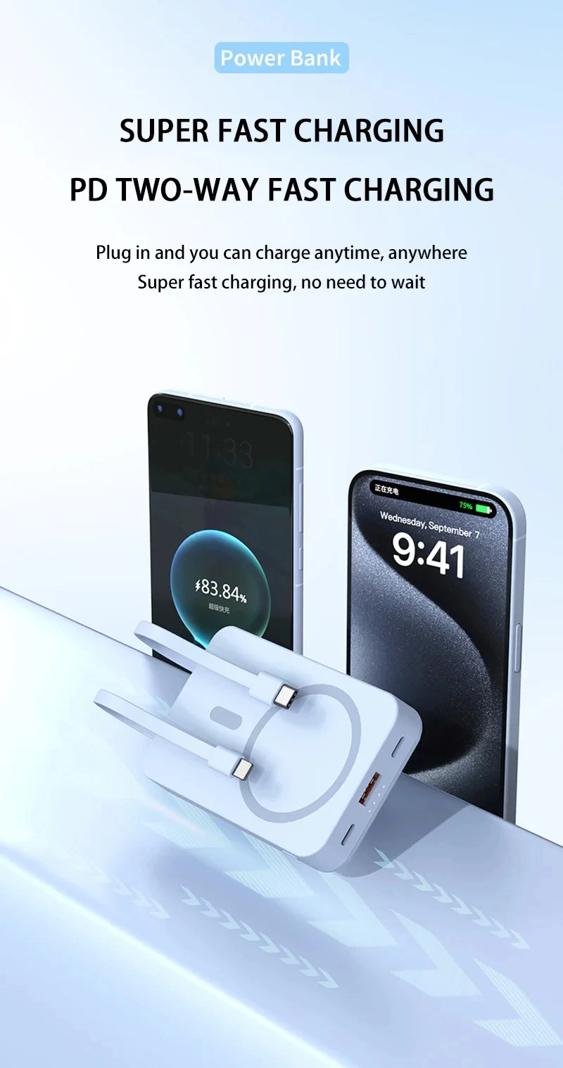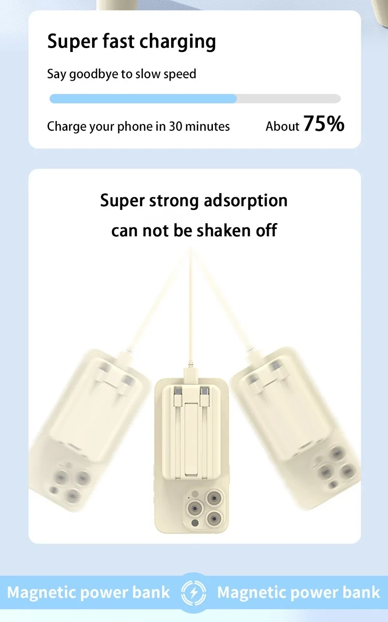 50000mAh Magnetic Wireless  PD20W Portable Three-in-one Power Bank Super Fast Charging For Iphone For Xiaomi With Hidden Bracket