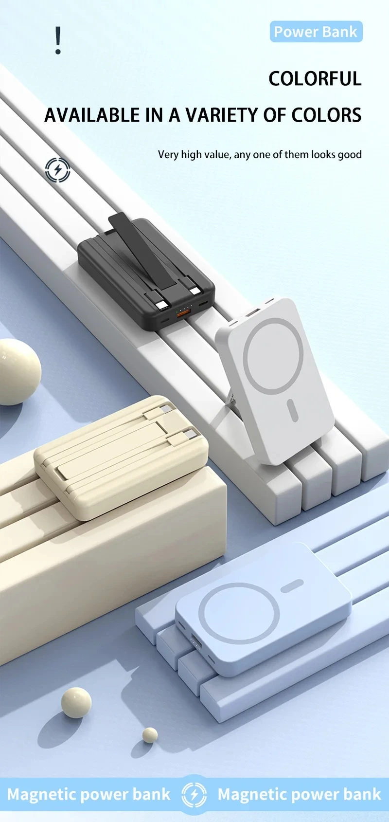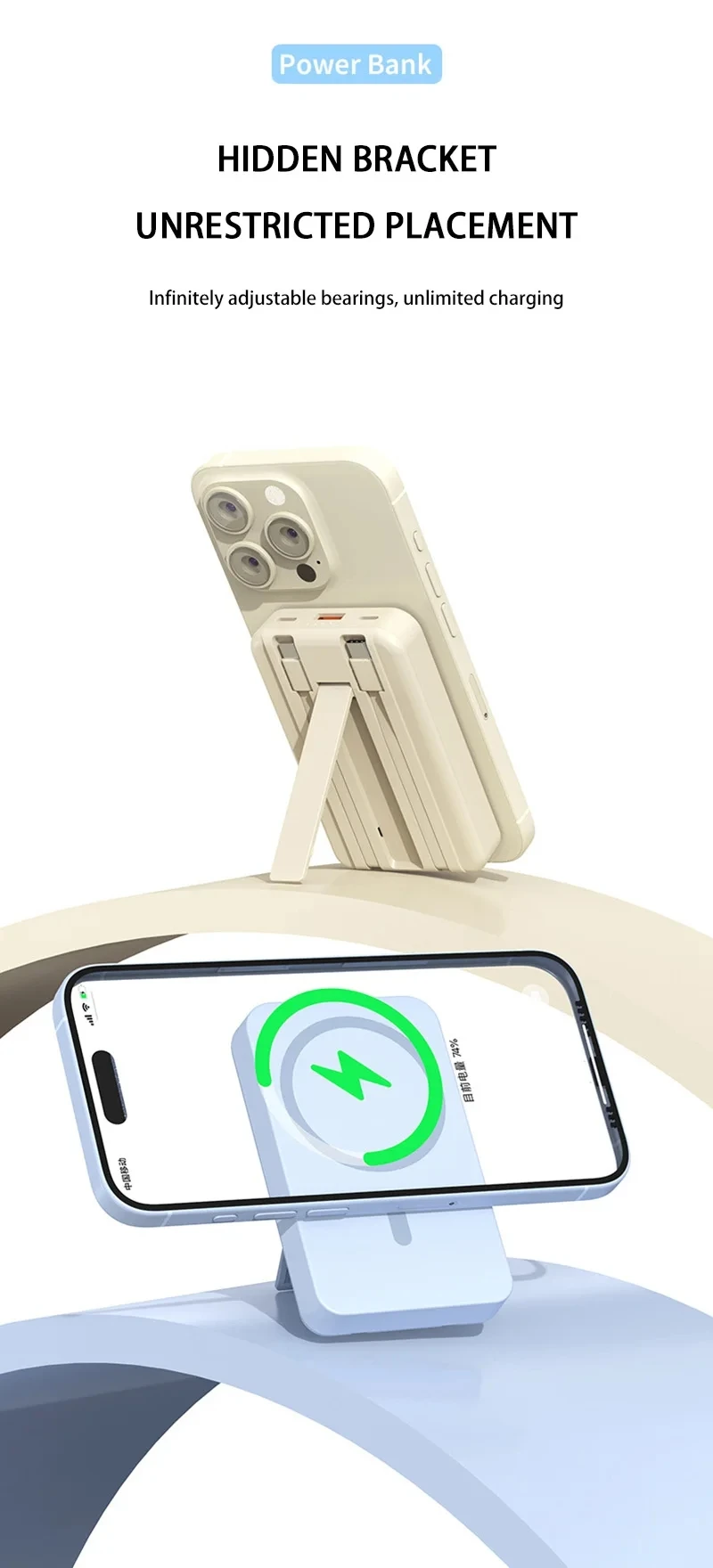 50000mAh Magnetic Wireless PD20W Portable Three-in-one Power Bank Super Fast Charging For Iphone For Xiaomi With Hidden Bracket