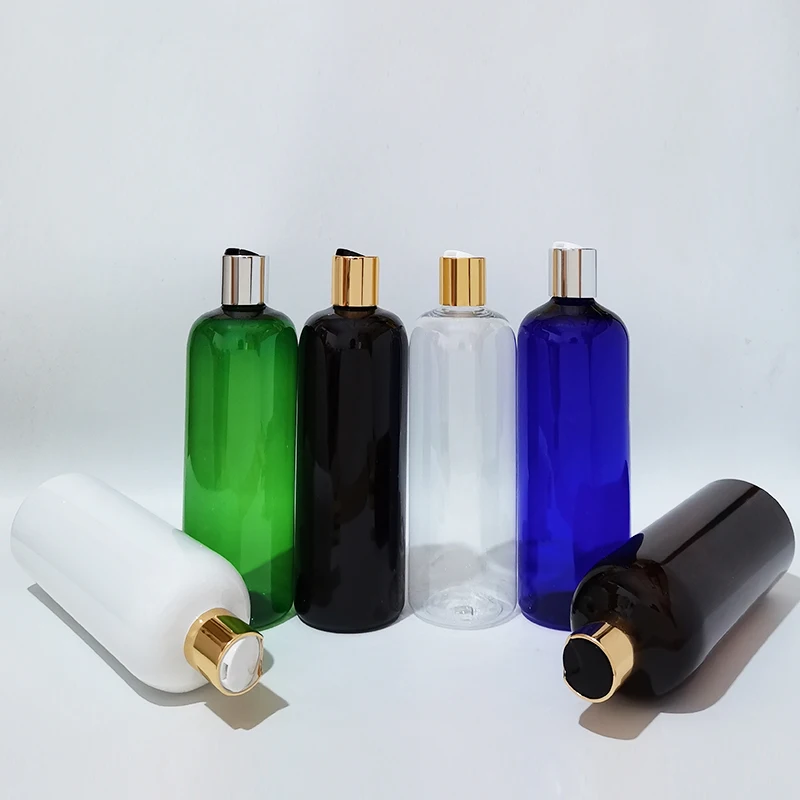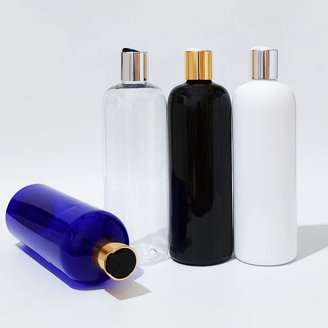 500ML Empty Skin Care Cosmetic Package Bottles With gold Silver Disc Cap Liquid Soap Shampoo PET Container