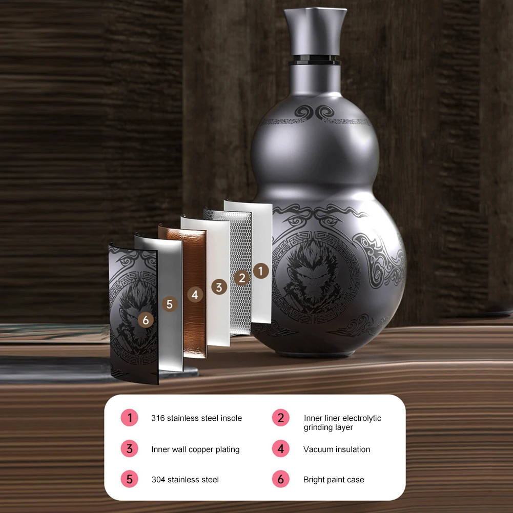 500ml Gourd Water Bottle Stainless Steel Retro Style Water Bottle Leakproof Double-Layer Insulated Cup for Cold Hot Beverages Specification: