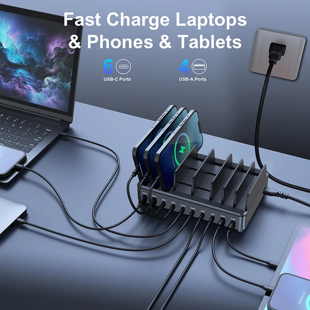 UHOMEBUY 500W USB C Charger 10 Ports GaN Charging Station Stand PD 100W Fast Charge for MacBook Pro iPhone Samsung Laptops Tablets