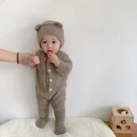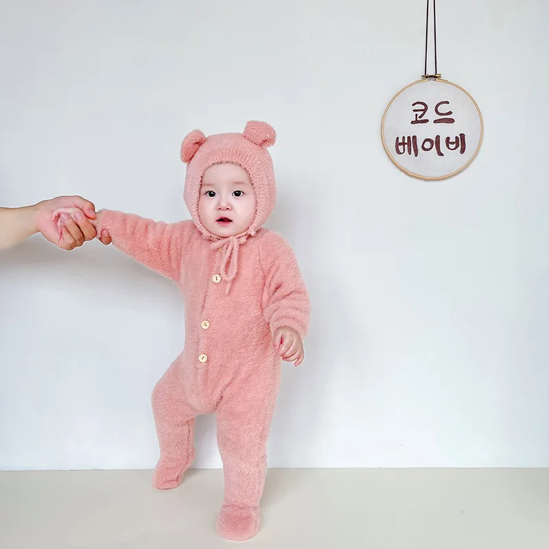 5097 Ins Baby Clothes 2024 Autumn Winter New Baby Boy's Jumpsuit Mink Velvet Cute Bear Baby Girl's One Piece Clothes