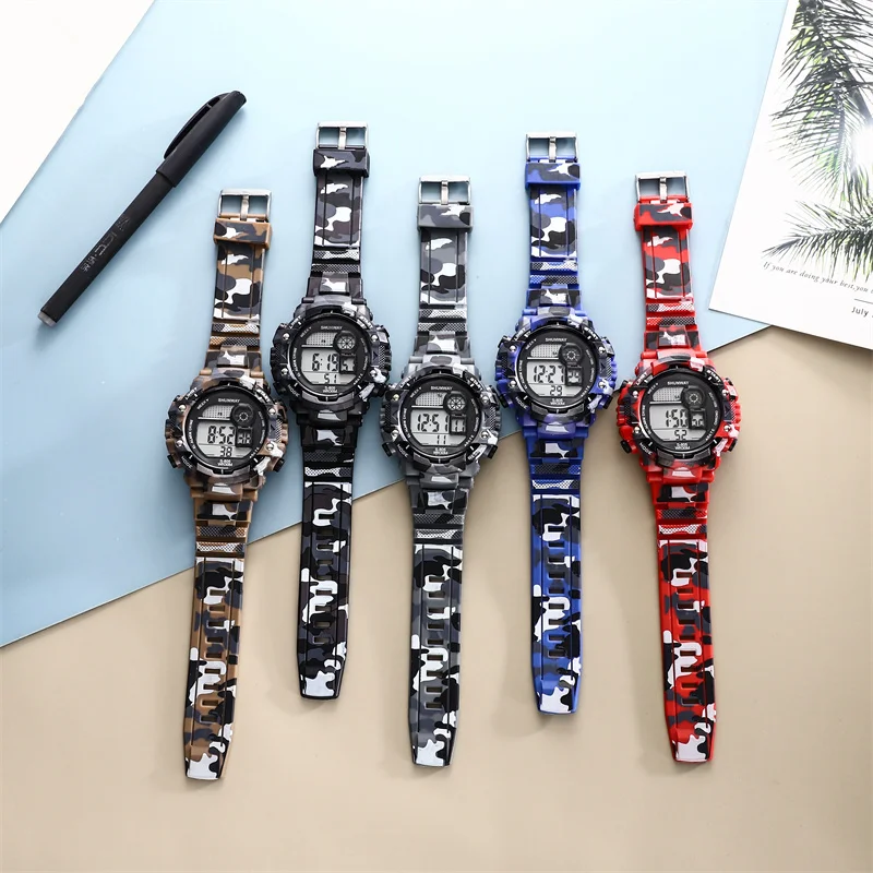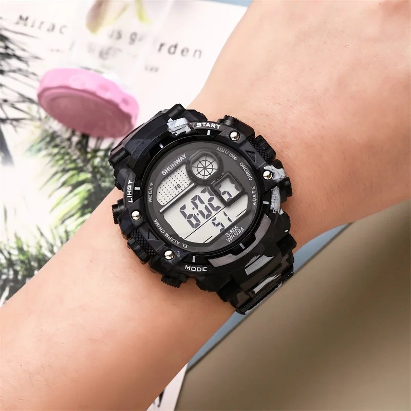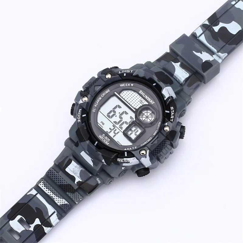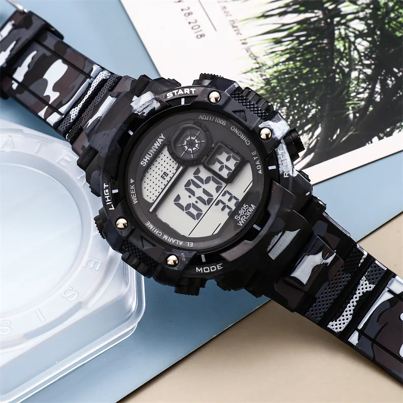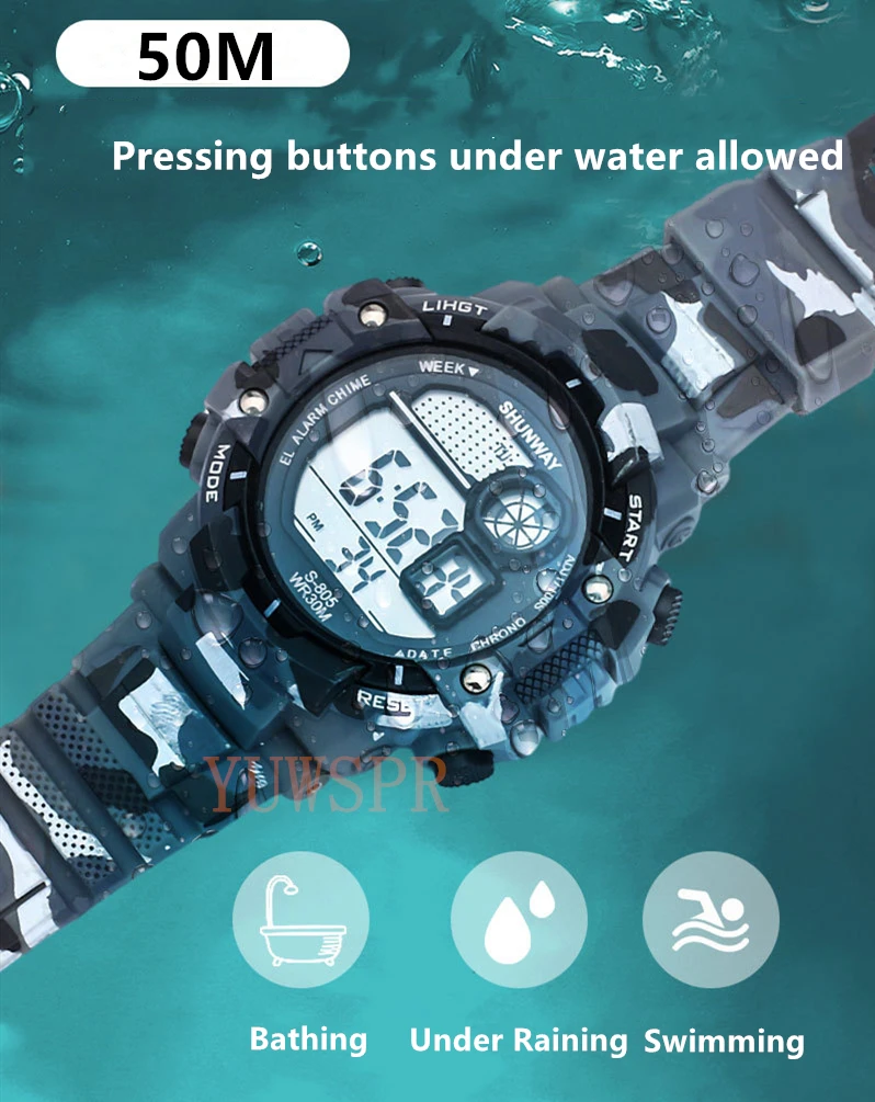 50M Waterproof Children Sports Electronic Watch Swimming LED Backlight Shockproof Camouflage Digital Watches for Men Boys 805
