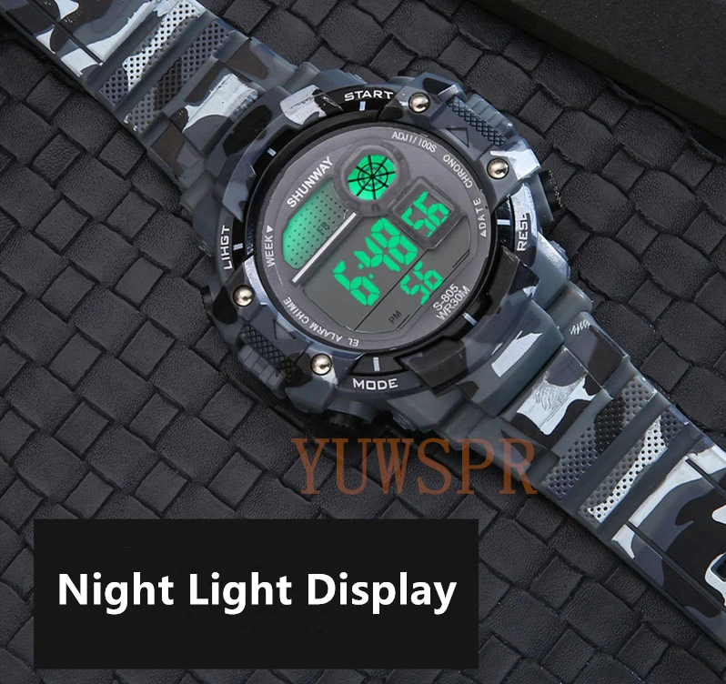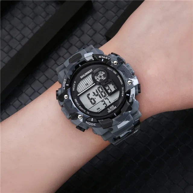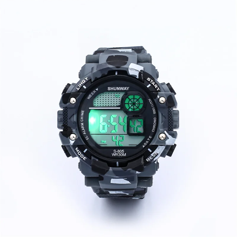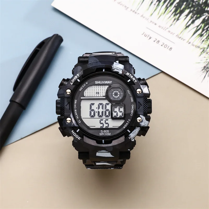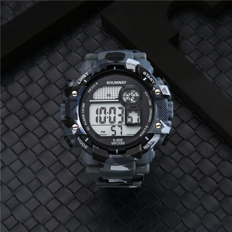 50M Waterproof Children Sports Electronic Watch Swimming LED Backlight Shockproof Camouflage Digital Watches for Men Boys 805