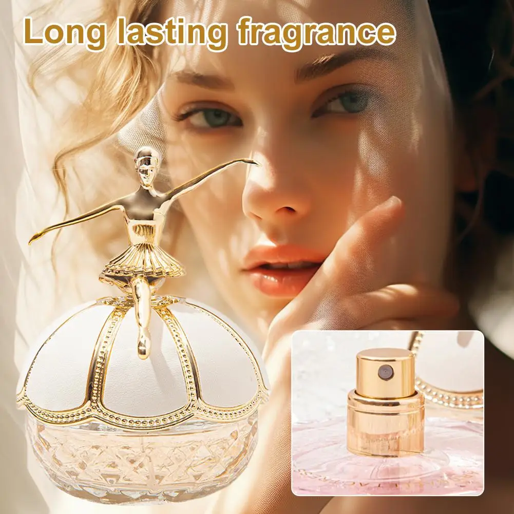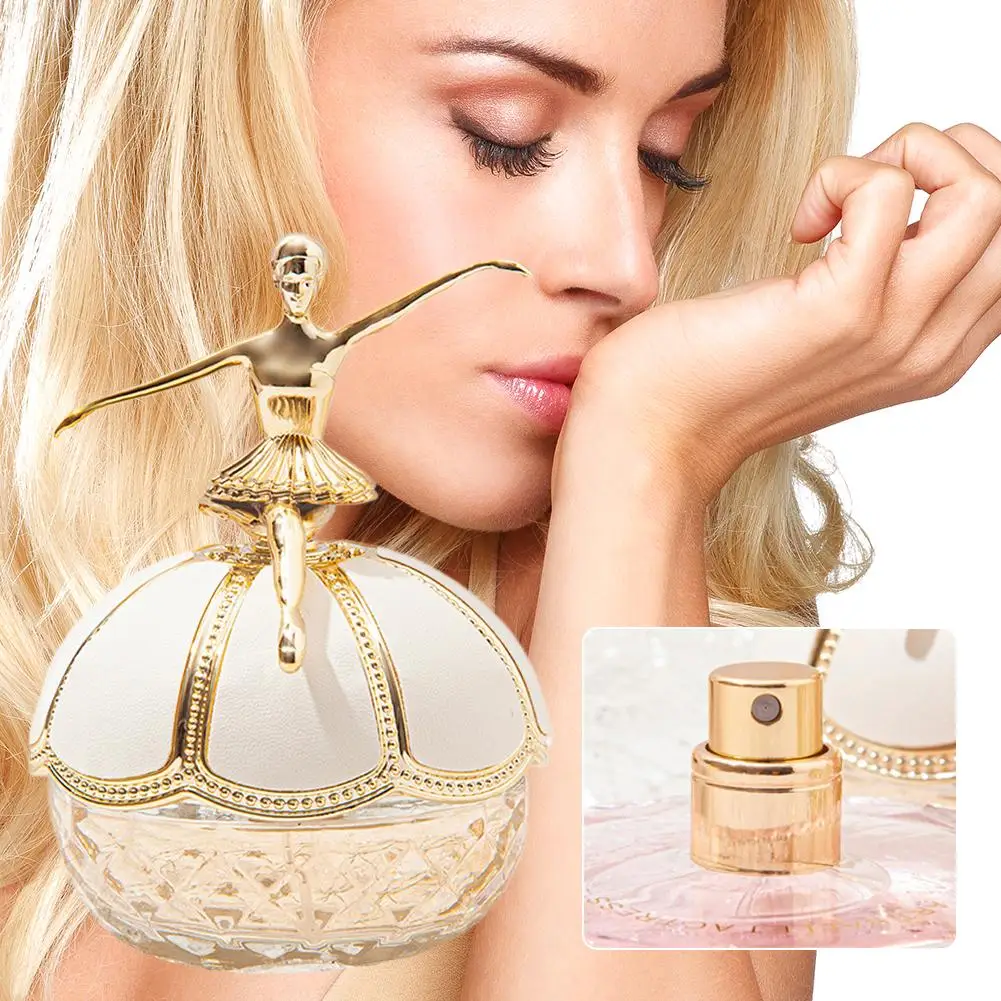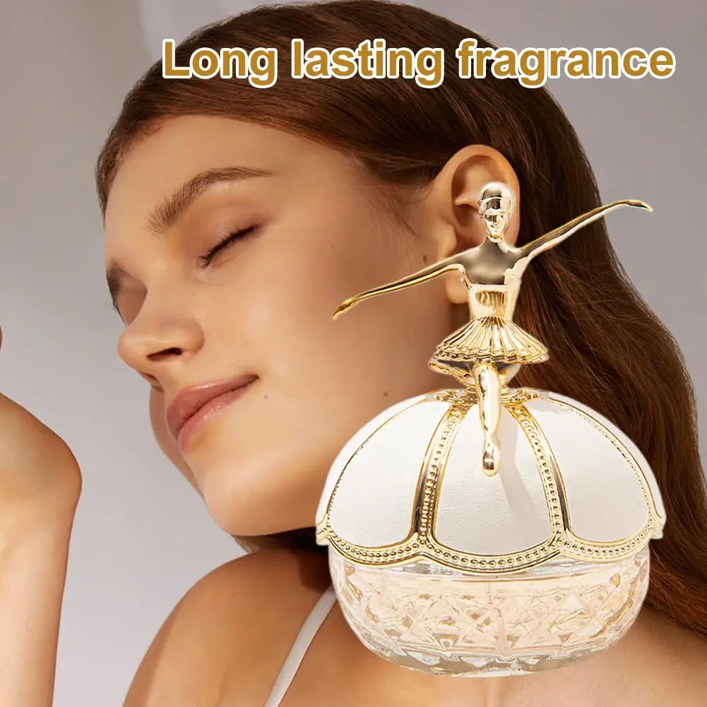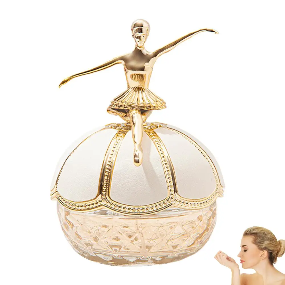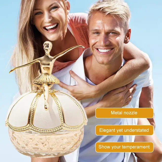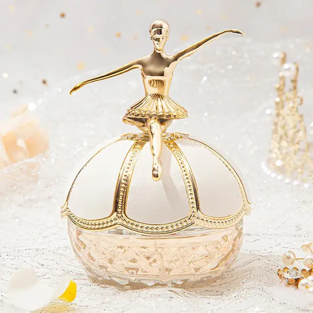 1. Elegant Ballerina Design: Immerse yourself in the enchanting world of ballet with this exquisite perfume. The unique bottle features a graceful golden ballerina figurine atop a sophisticated white and gold domed base, capturing the spirit of elegance and artistic beauty. It’s not just a fragrance; it’s a decorative piece that adds a touch of charm to any vanity.