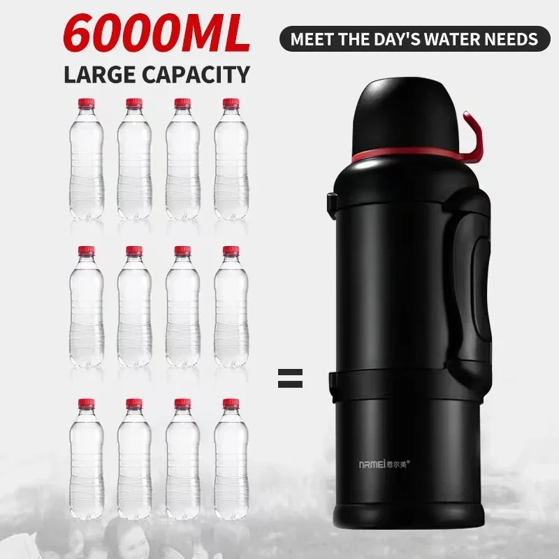 5L/6L Water Bottle Large Thermos with Handle Vacuum Flask Sports Stainless Steel Portable Leakproof with