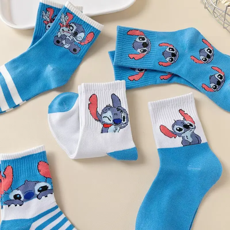 5 Pairs teenager spring Stitch Children's Socks Cartoon Design Boys Girls Cartoon Socks