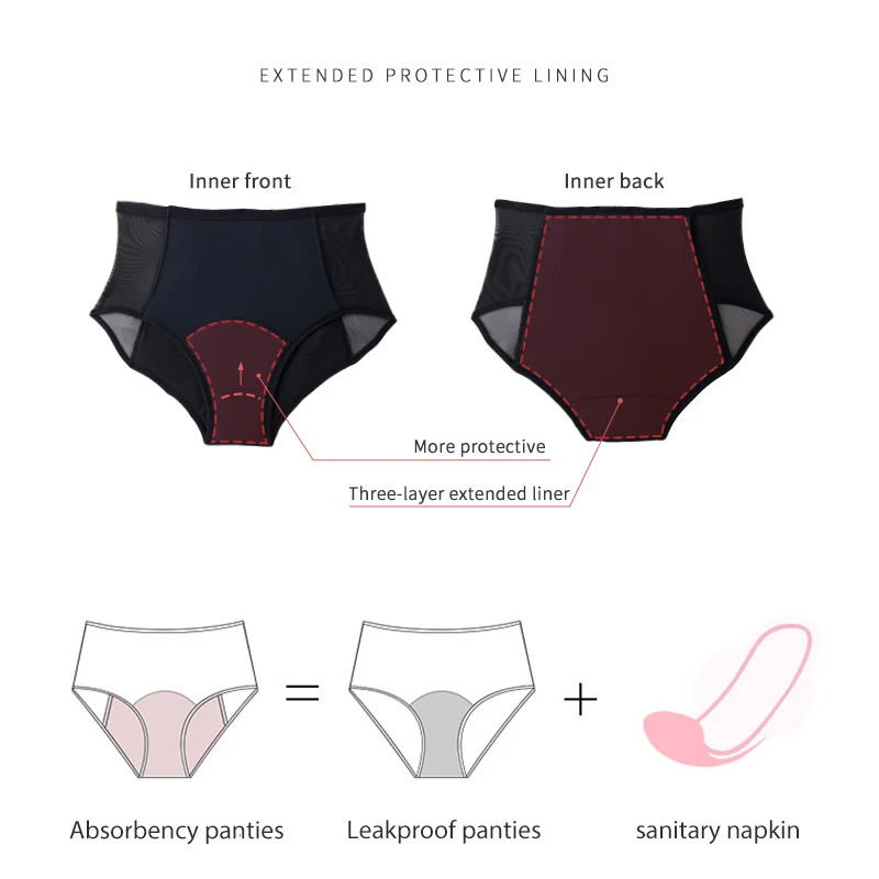1.Reusable menstrual period pants,no need sanitary napkins or tampons.