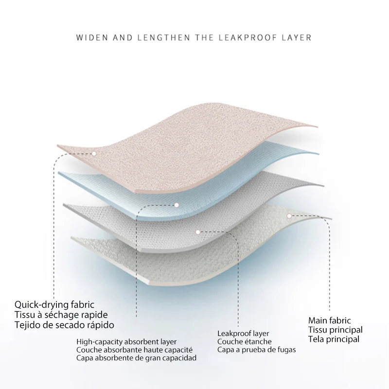 3.Four-layers structure for heavy absorbency period. The absorption capacity of romewear panties is approximately equal to 4 tampons.If you have very heavy menstrual flow first day, you may need change a new one as soon as possible.