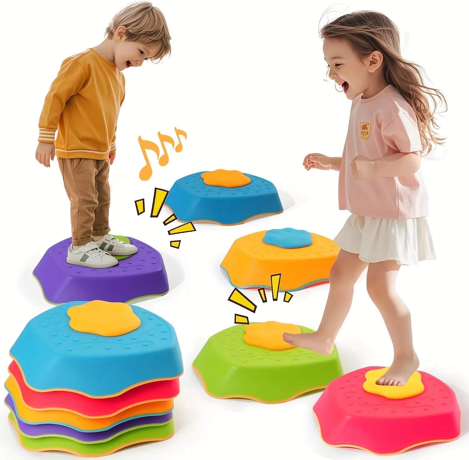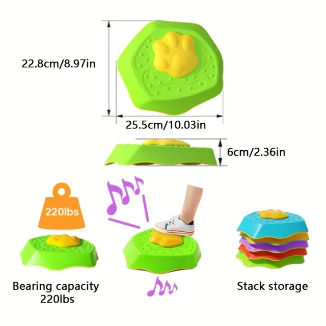 Durable & Safe for Indoor/Outdoor Use-Built with rugged, weather-resistant plastic, these stepping stones withstand rough play in gardens, parks, or living rooms. Non-slip bases and rounded edges ensure safety during energetic adventures.