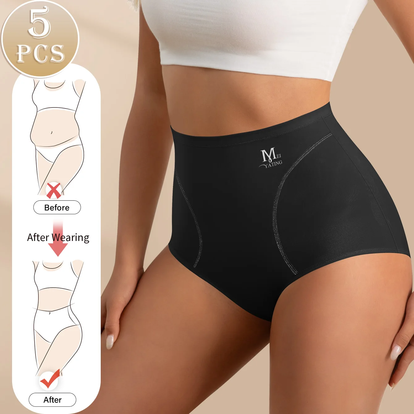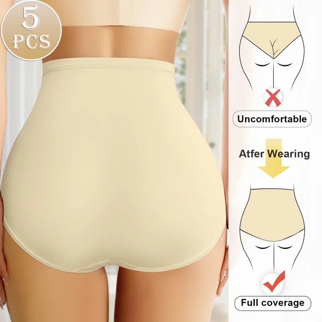 5pcs High Waisted Tummy Tightening Women’s Panties Triangle Pants Non-marking Breathable Comfortable