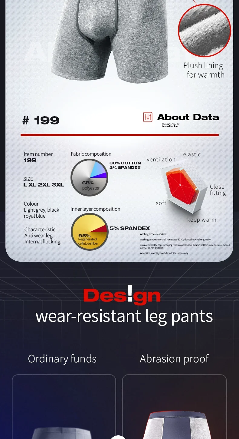 5PCS Men’s thermal underwear is thickened to prevent leg chafing and lengthened, with a straight