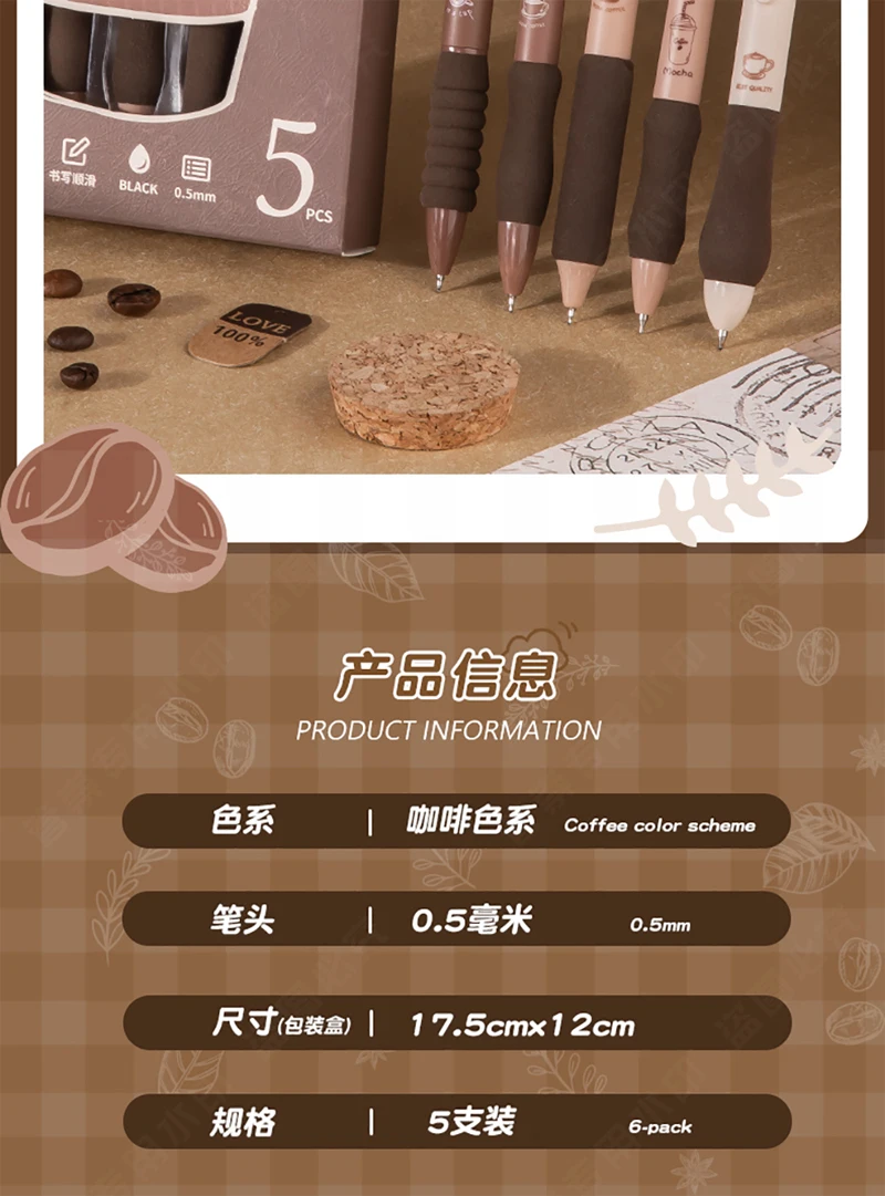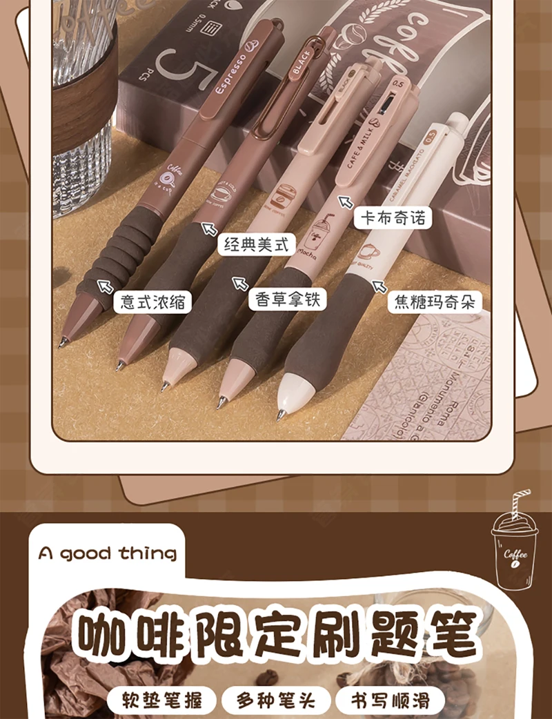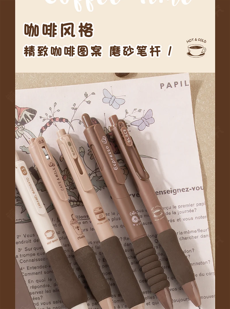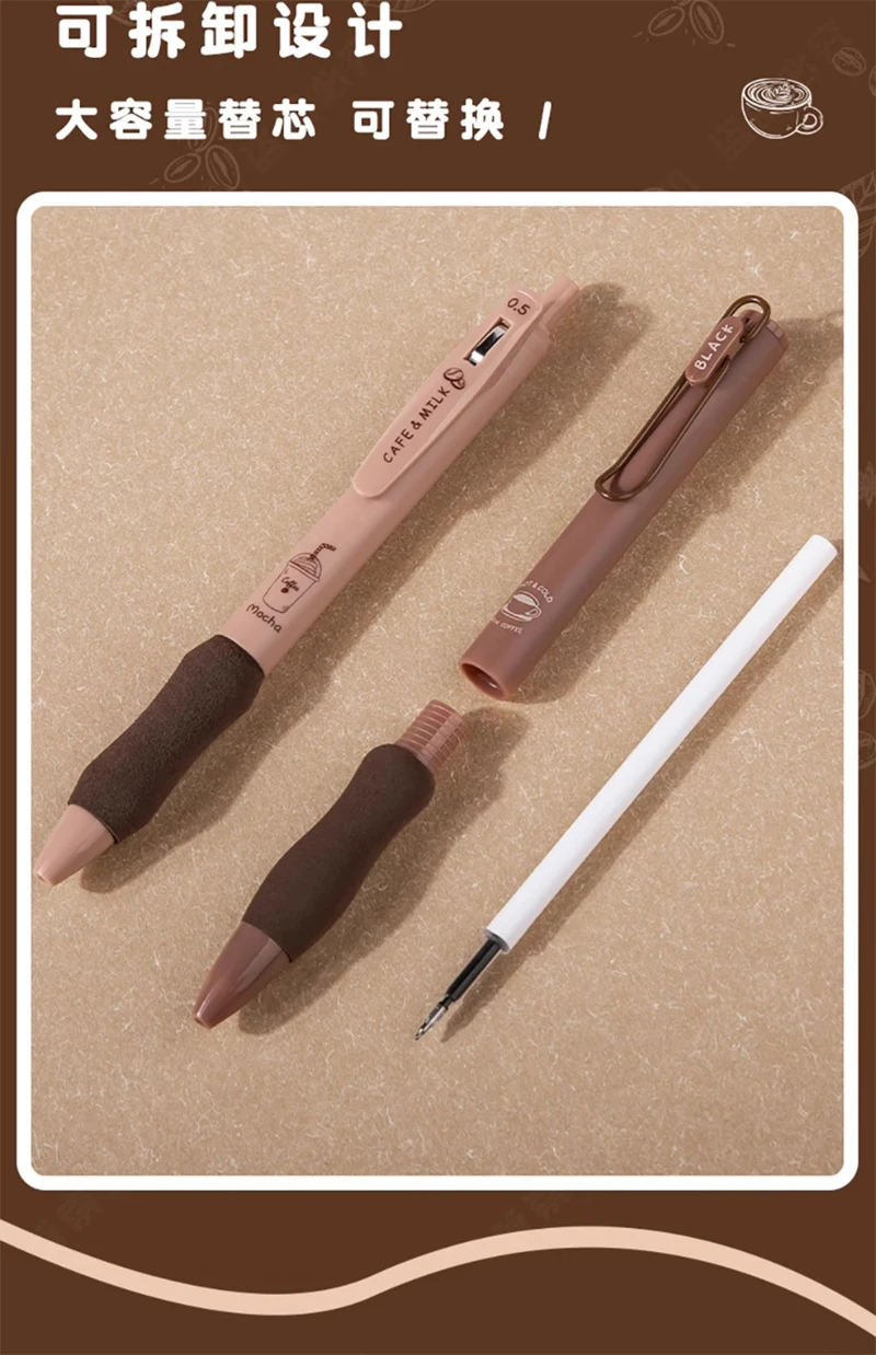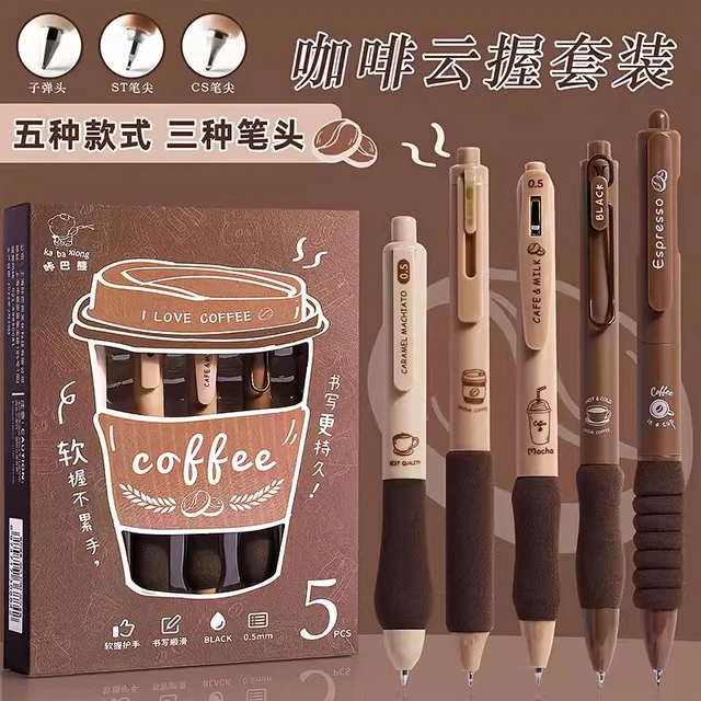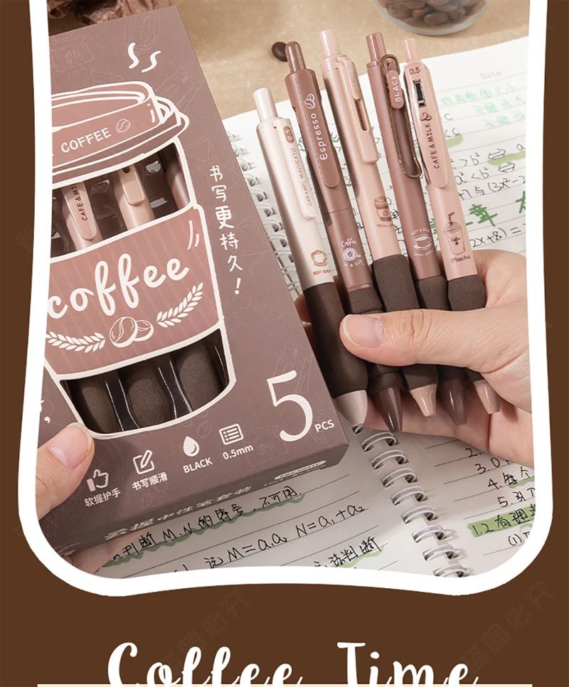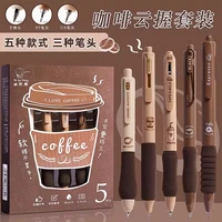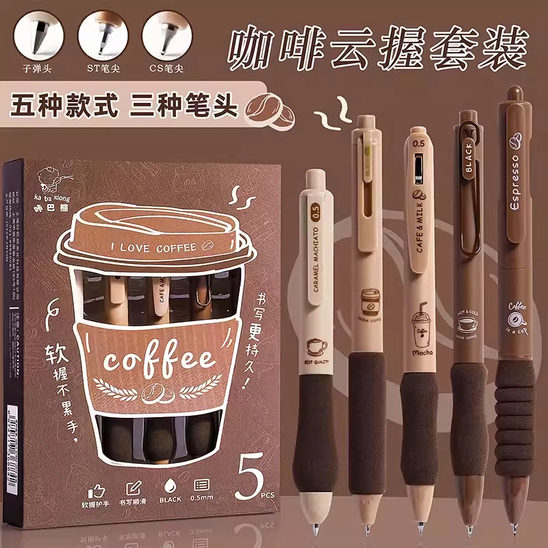 5PCS/Pack Coffee Series 0.5mm Gel Pen Set Soft Touch Stationery Pen Black Refill Writing Pens For Student