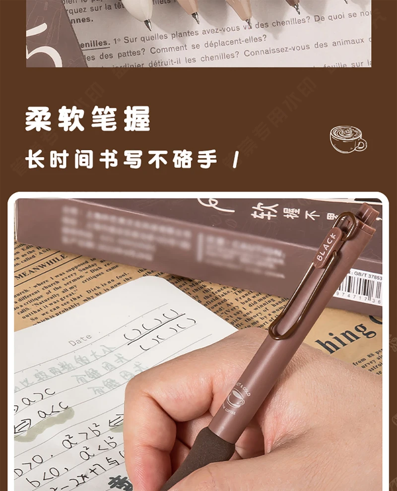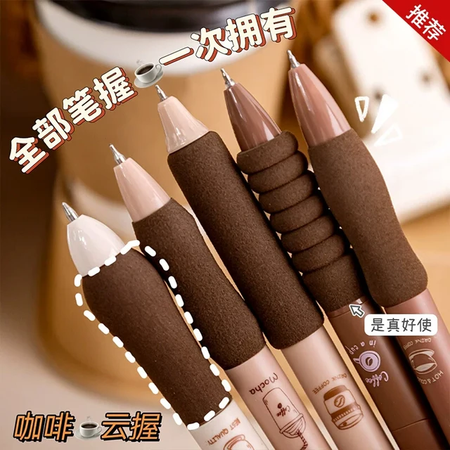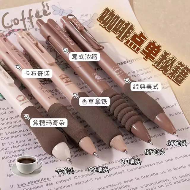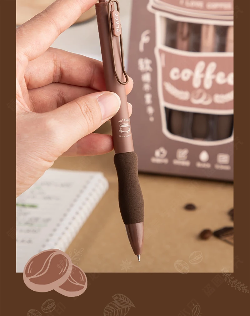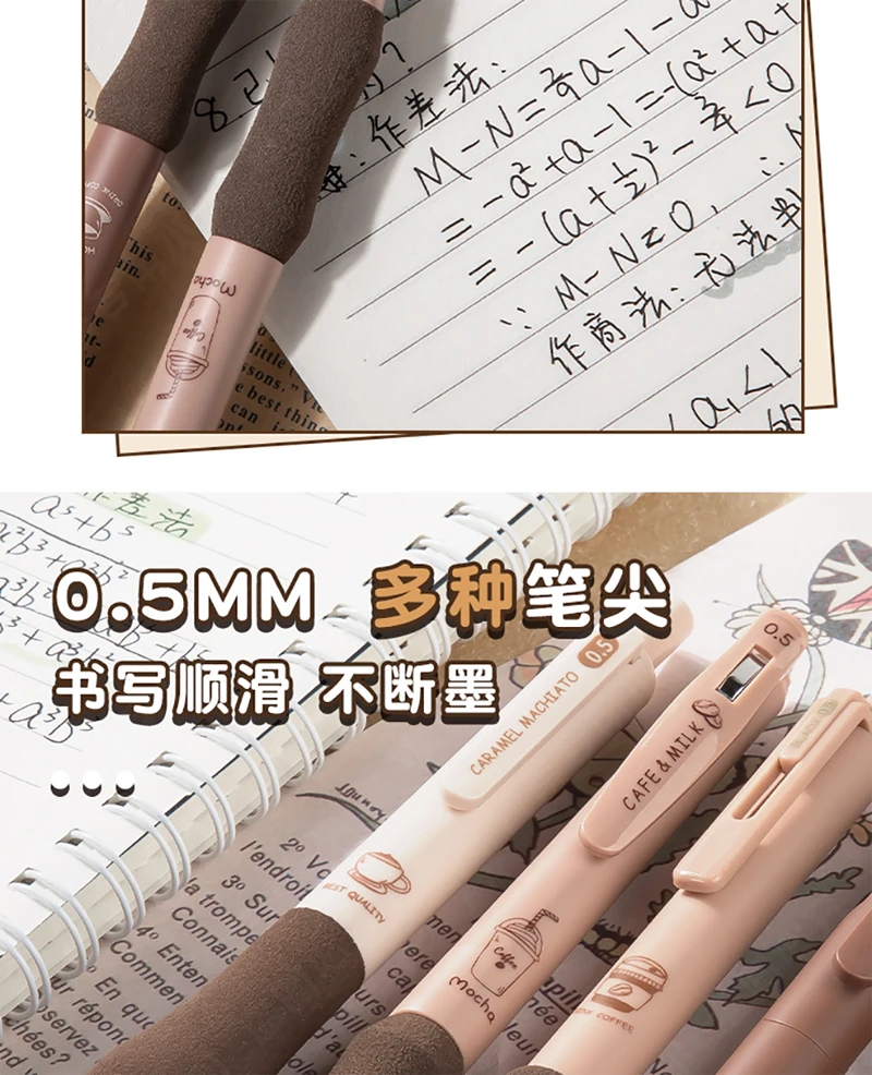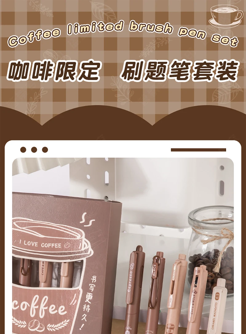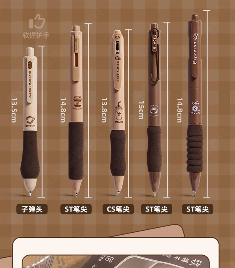 5PCS/Pack Coffee Series 0.5mm Gel Pen Set Soft Touch Stationery Pen Black Refill Writing Pens For Student