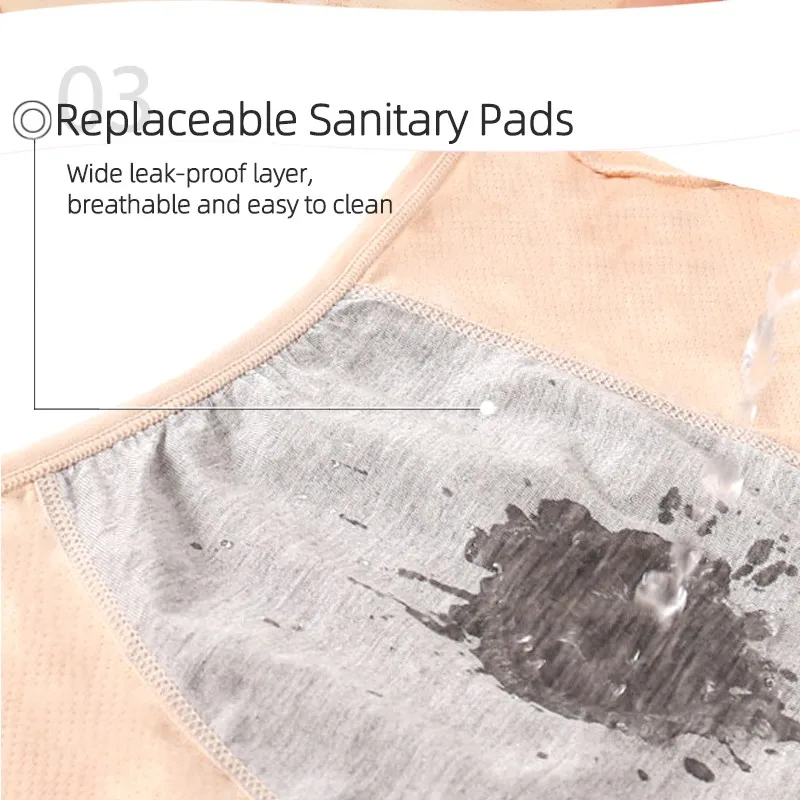 It is covered with a layer of waterproof and breathable fabric at the bottom and back of the underwear, which is not water permeable but can penetrate sweat, effectively preventing the occurrence of lateral leakage during menstruation in women
