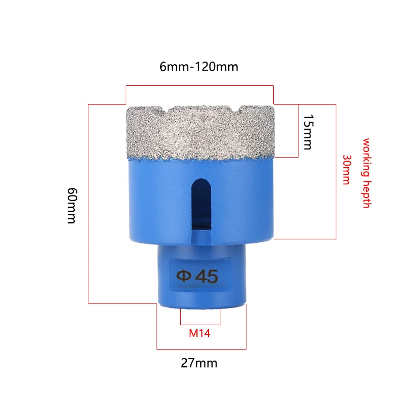 M14 Thread Vacuum Brazed Dry Diamond Drilling Core Bits Ceramic Tile Hole Saw Granite Marble Porcelain Brick Stone Drill Bit Tools